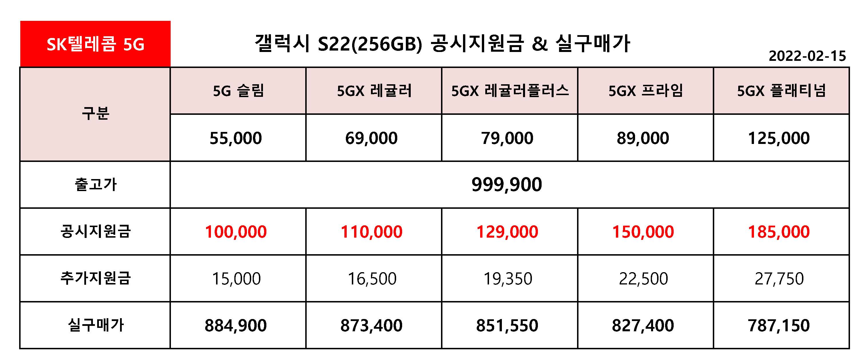 갤럭시 S22 사전예약과 함께 공시지원금도 공개 되었습니다.