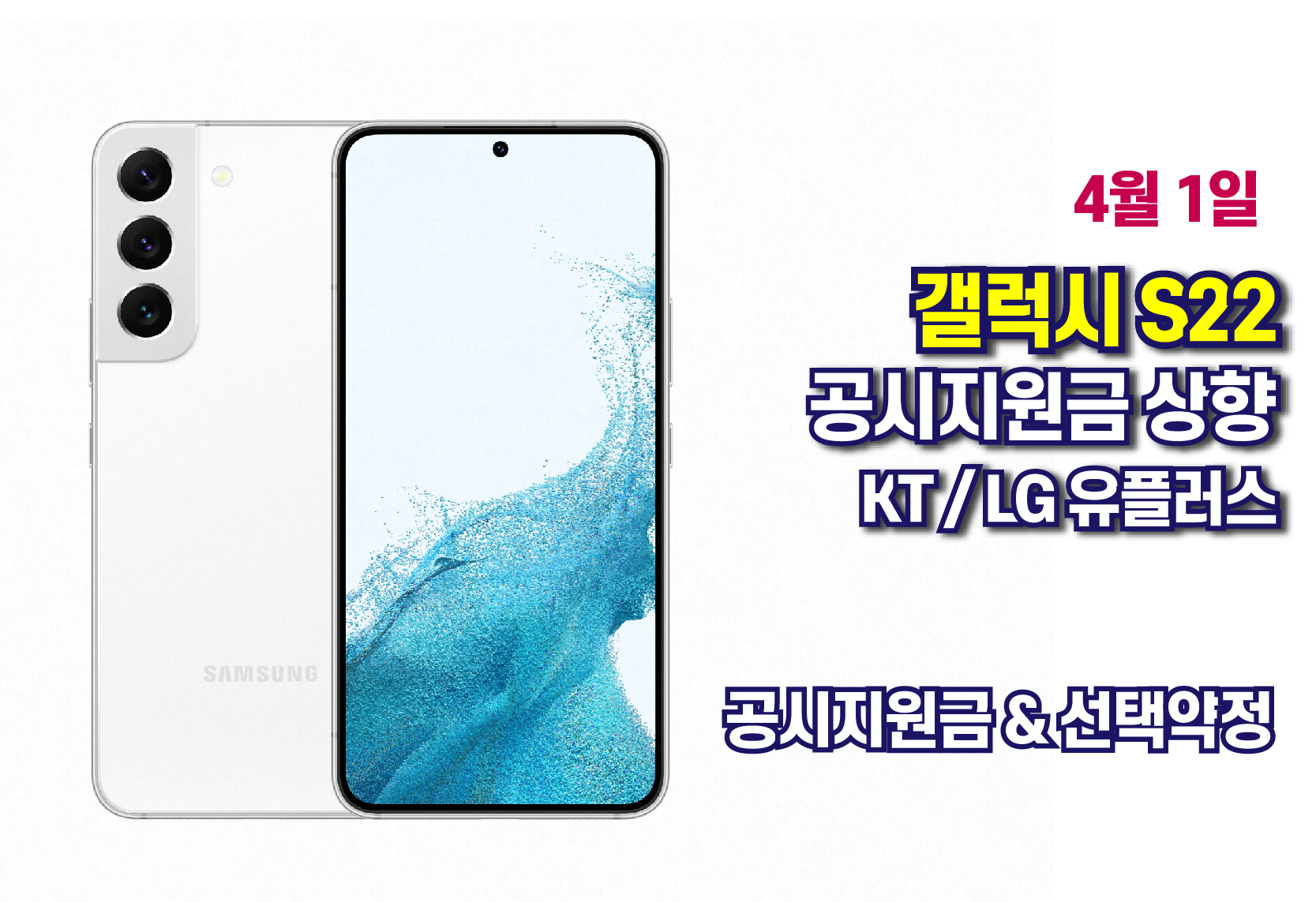 4월 1일 갤럭시 S22 공시지원금 상향조정 - KT l LG 유플러스