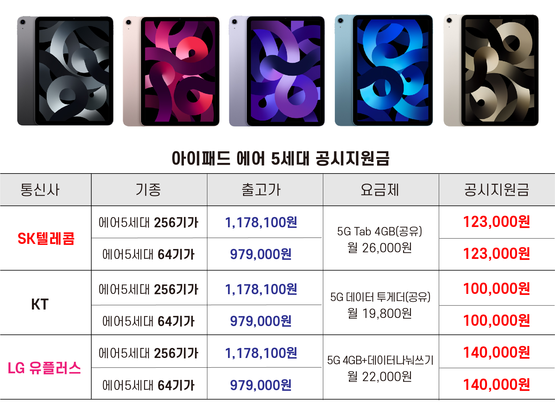 아이패드 에어 5세대 신규 출시 - 공시지원금 정리