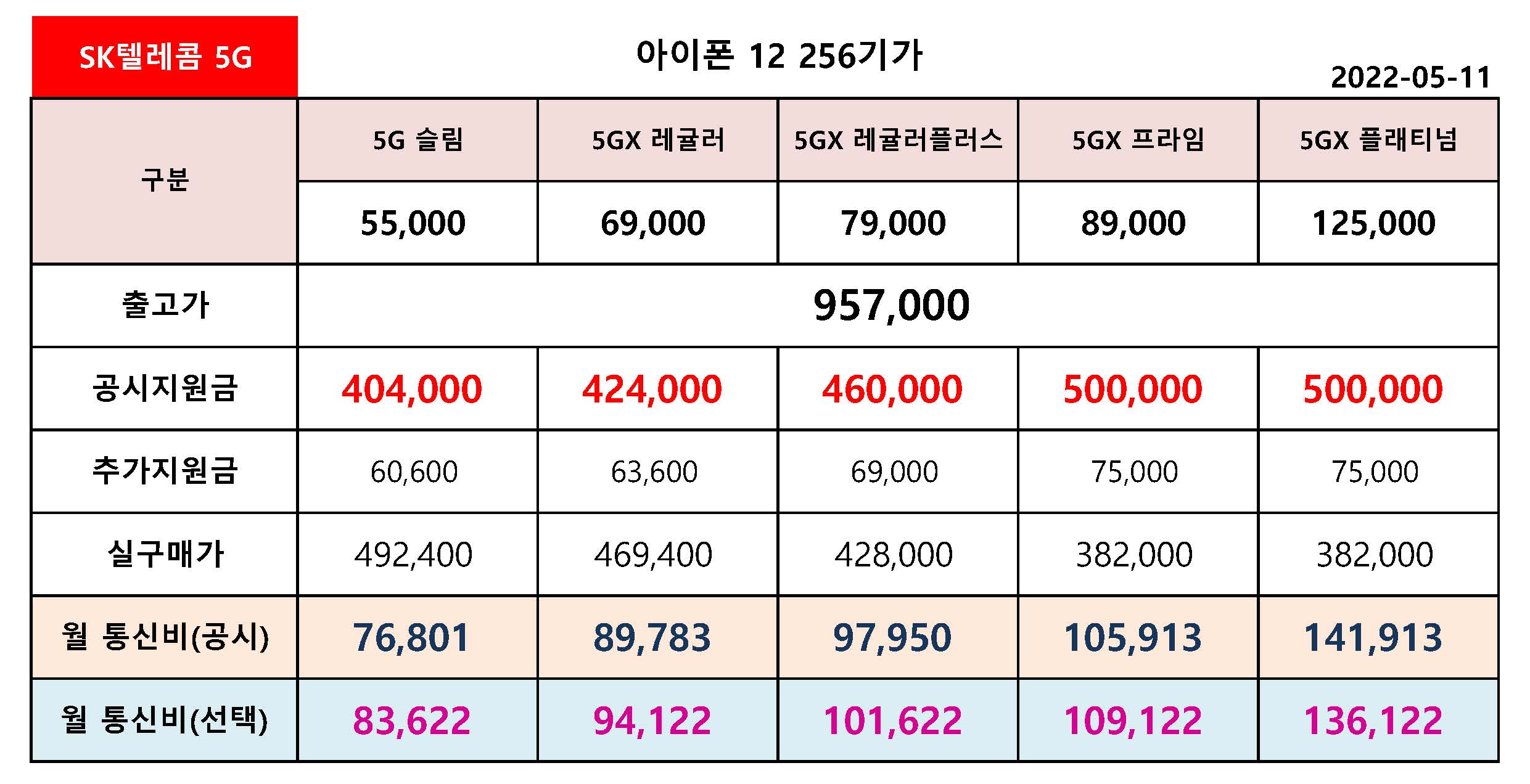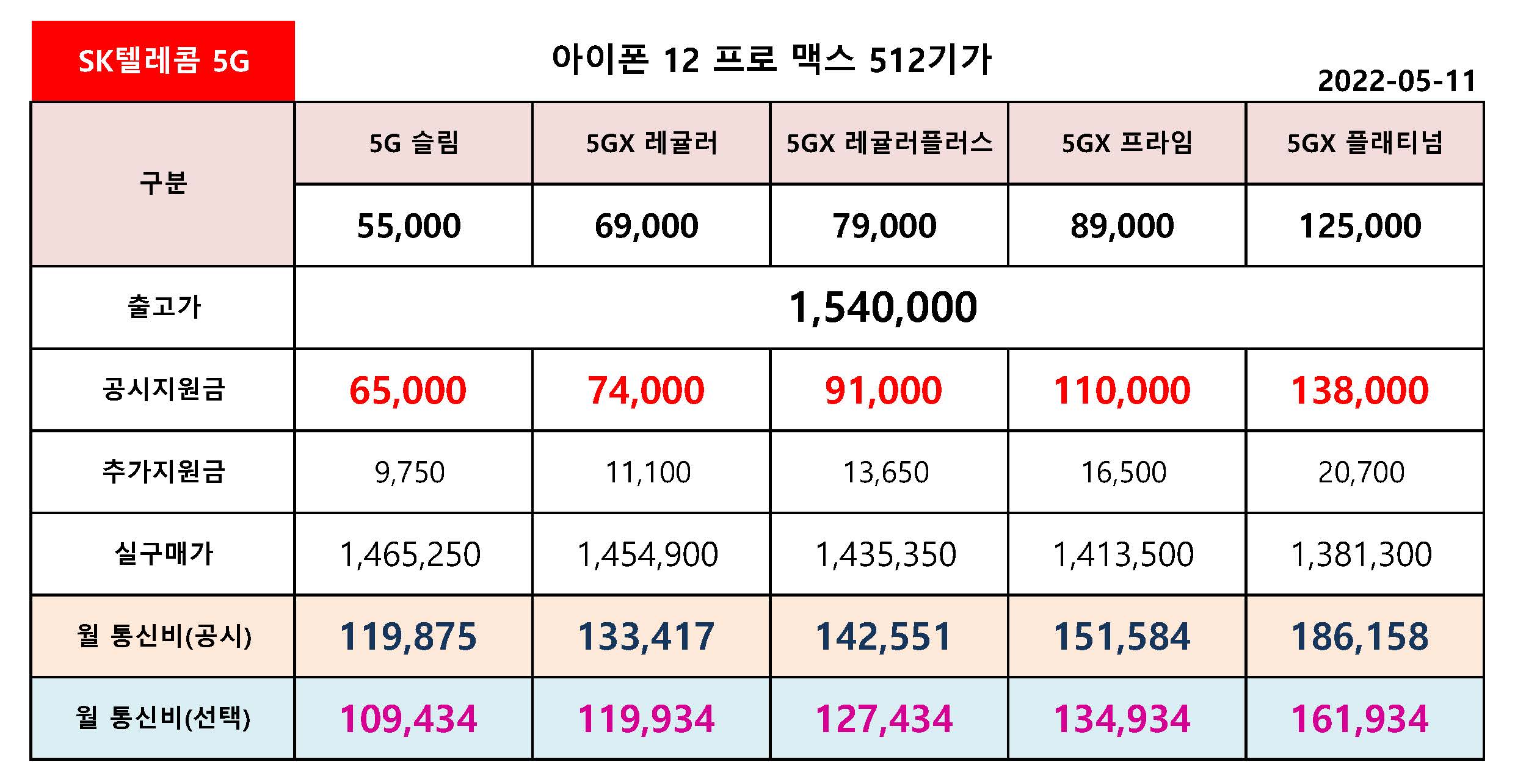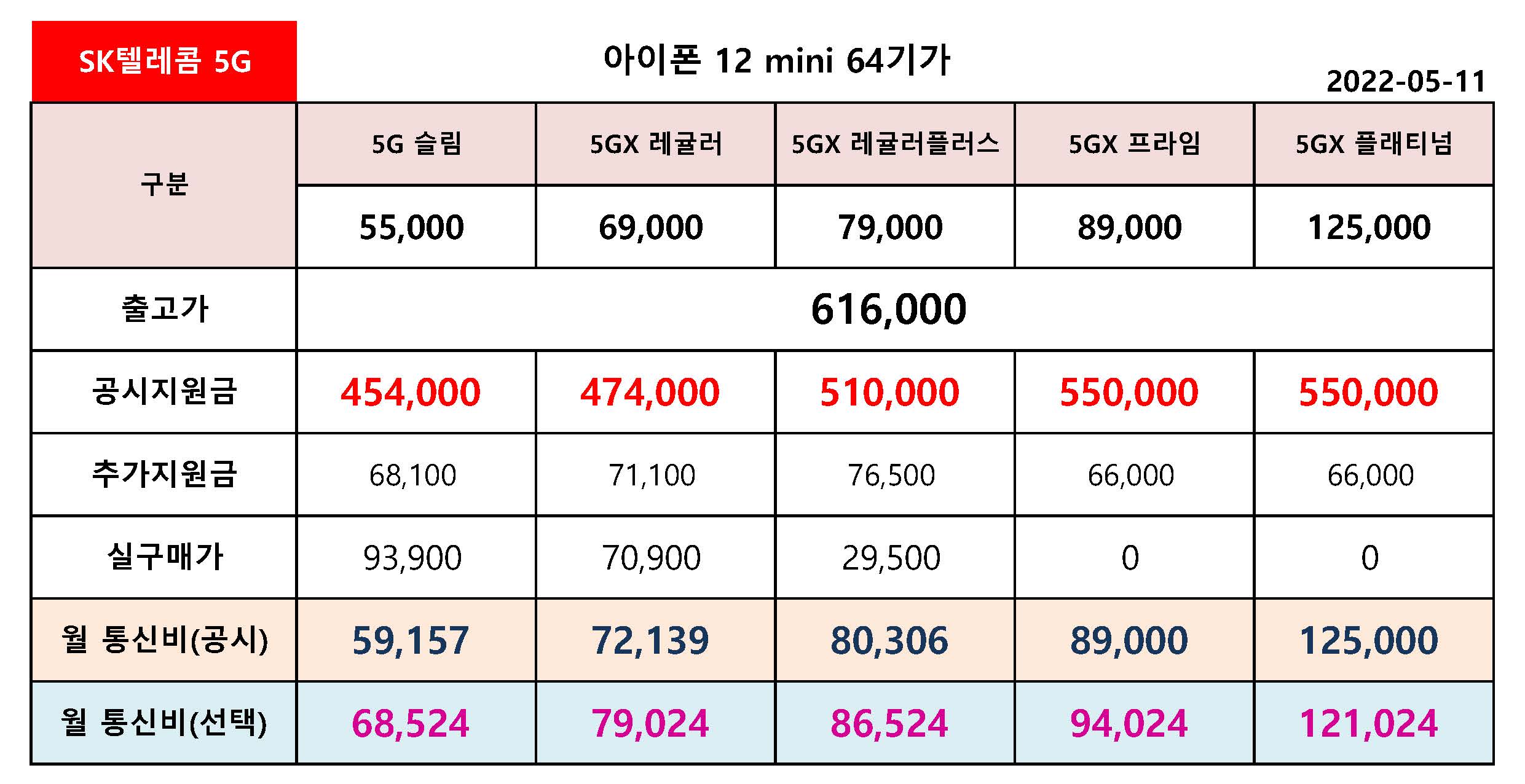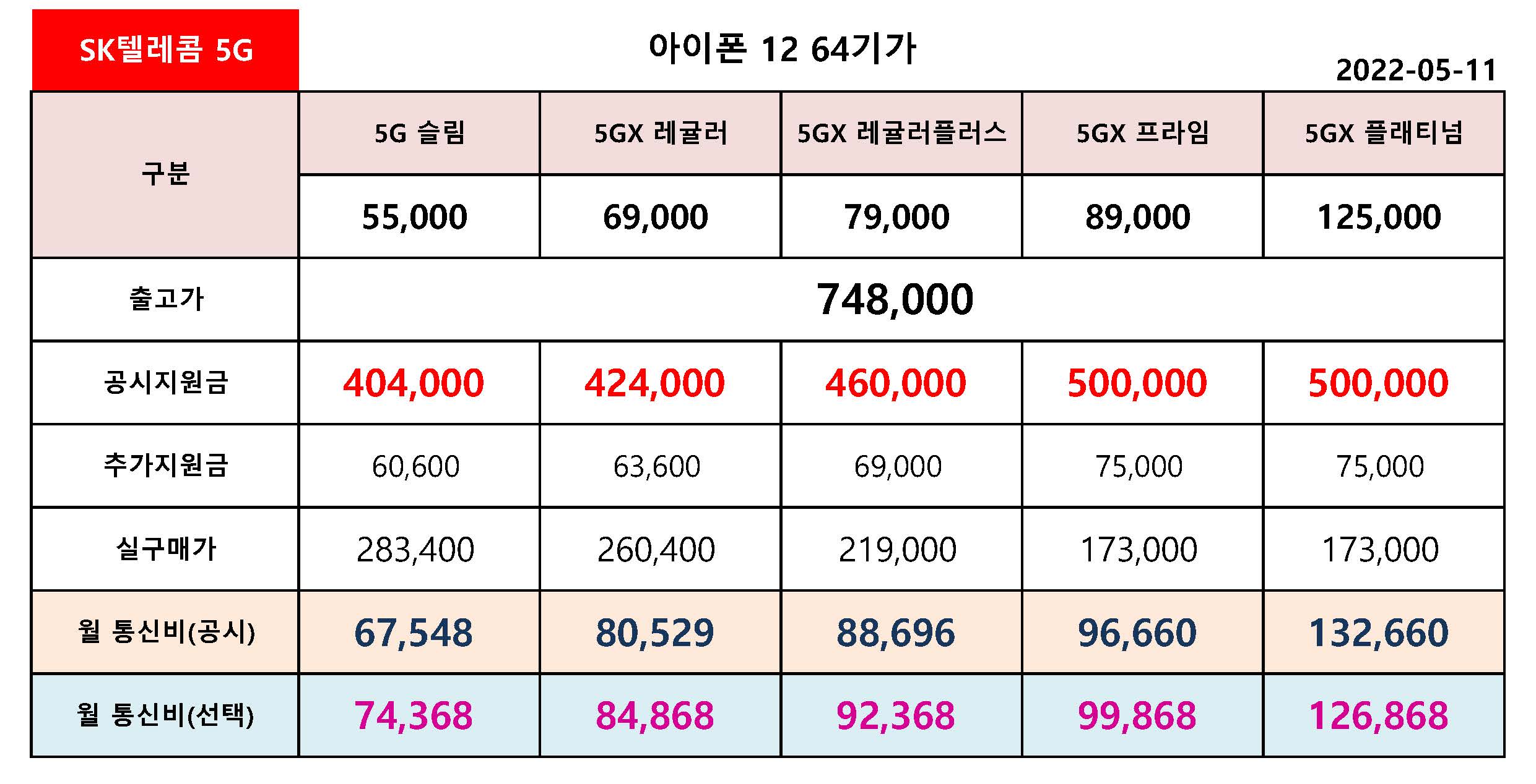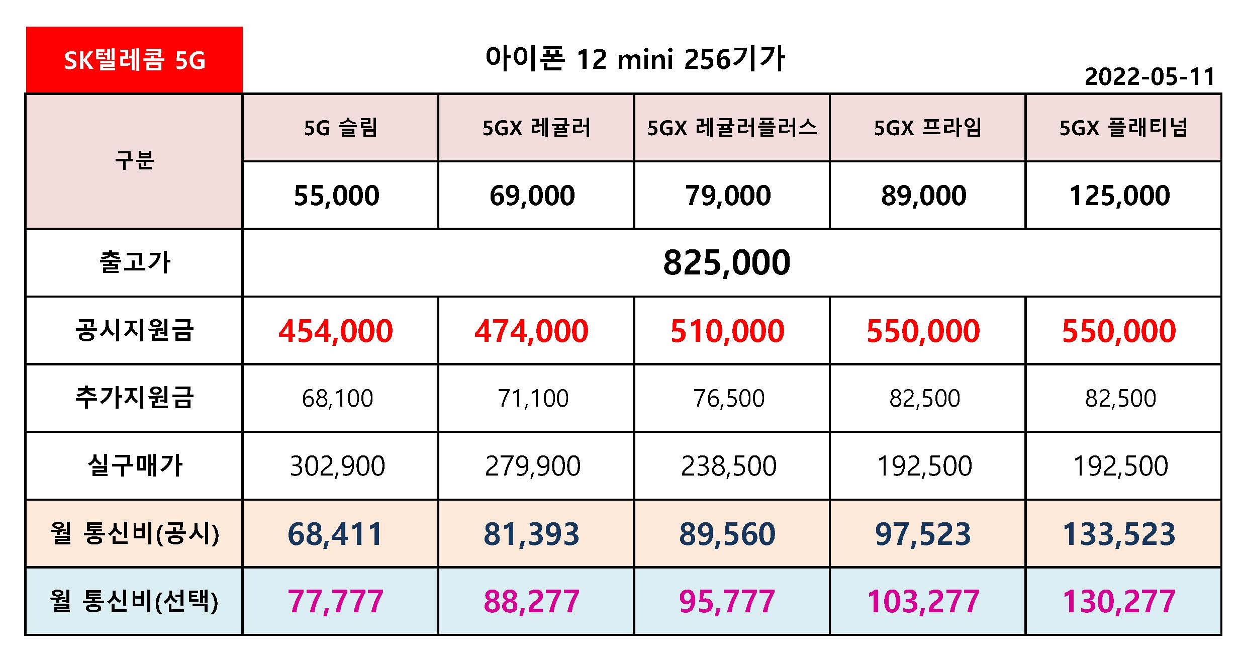 | 아이폰 12 미니 공시지원금 상승 월 통신비 정리 -SK텔레콤 4월 1일 (0) | 2022.04.07 |