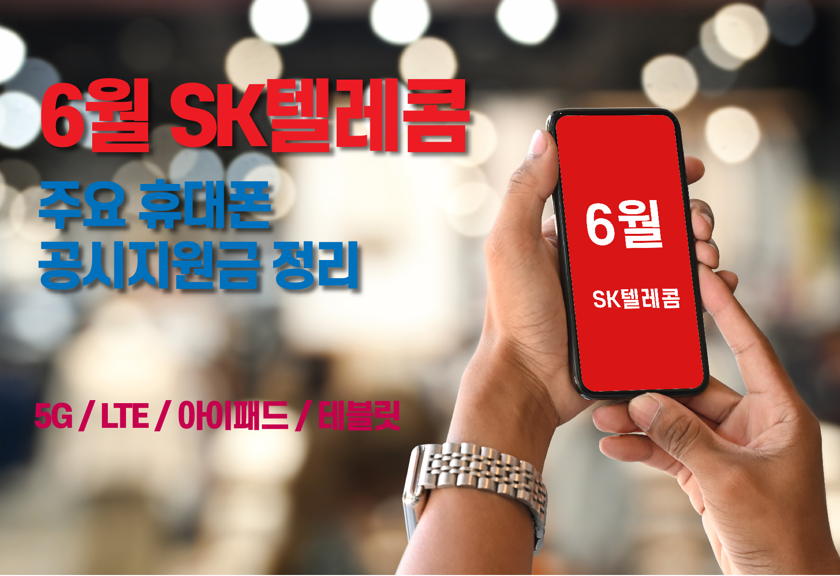 6월 SK텔레콤 5G, LTE, 아이폰, 테블릿등 주요 휴대기기의 공시지원금을 정리 하였습니다