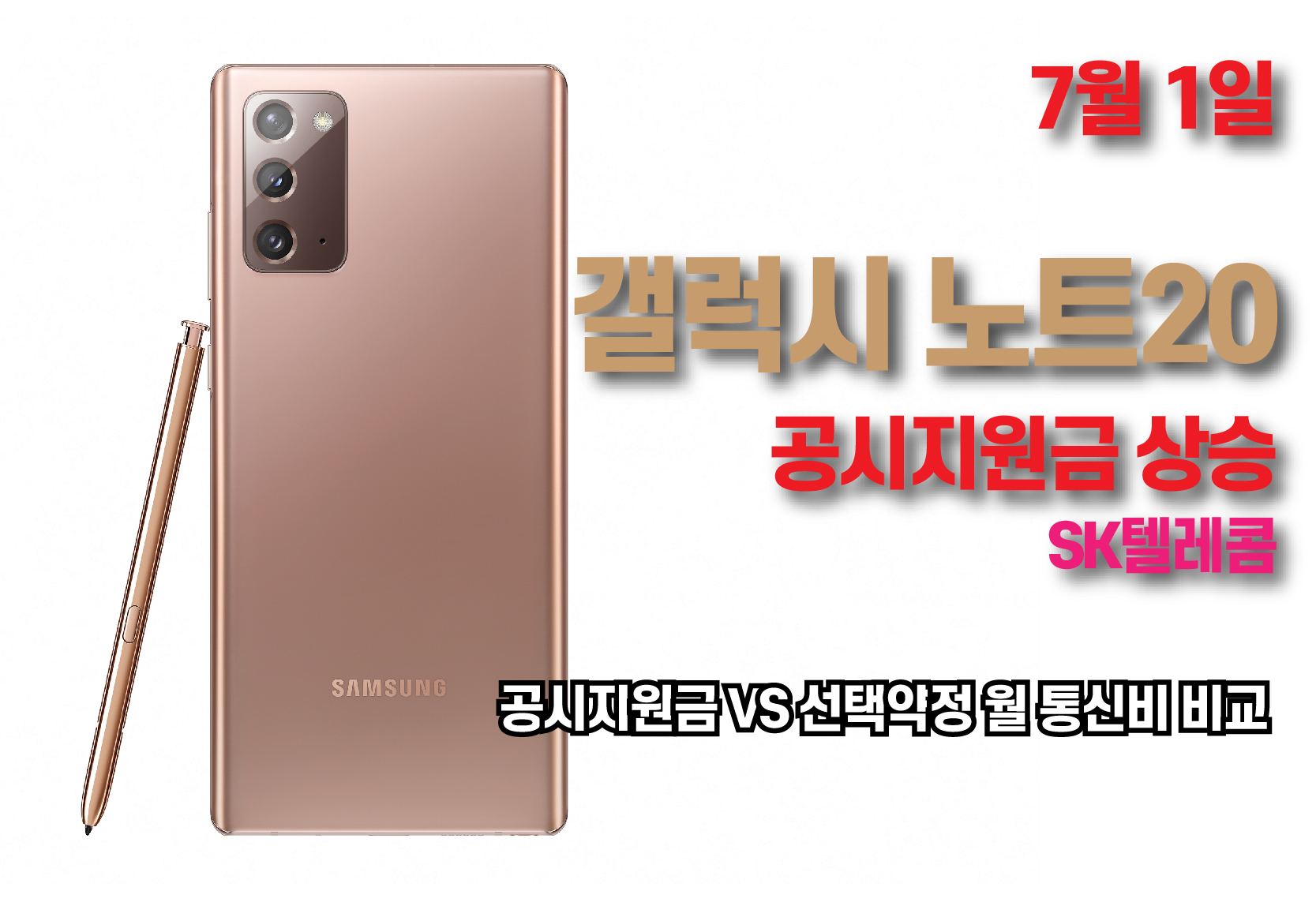 갤럭시 노트20 공시지원금 상승 - SK텔레콤 7월 1일