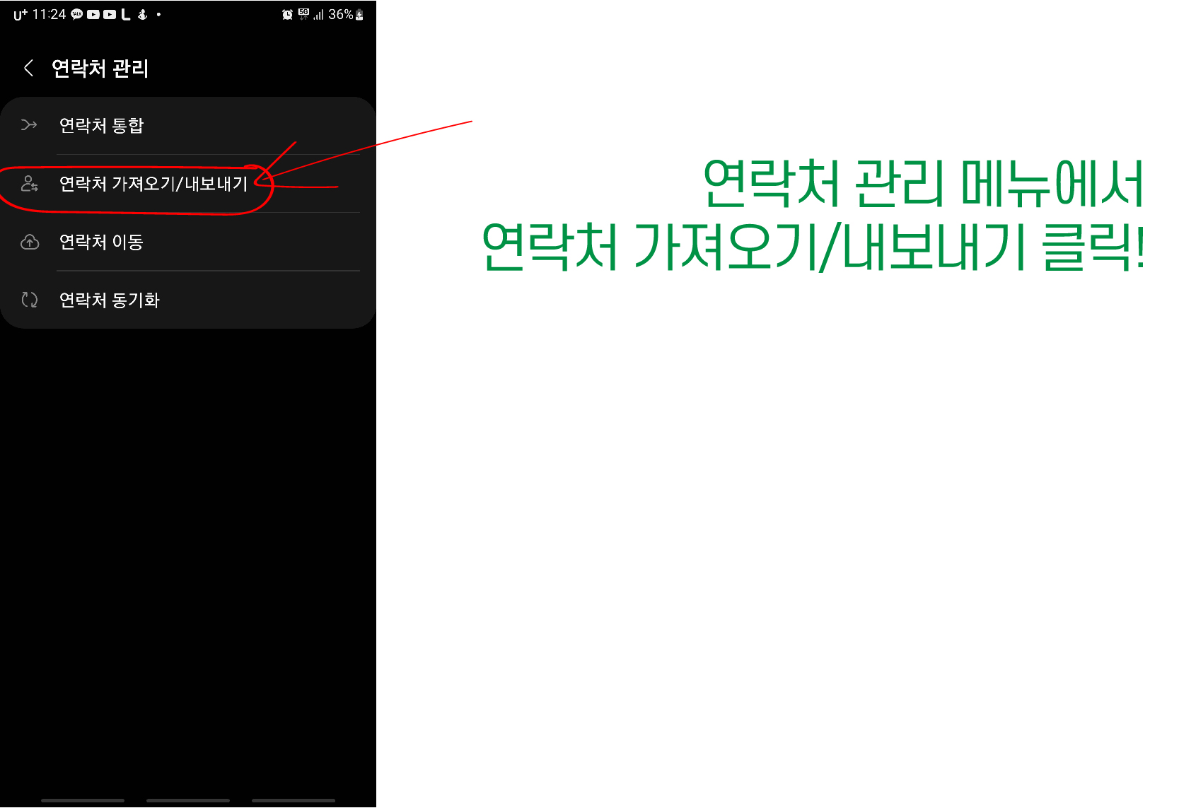 9. 연락처 가져오기/내보내기 클릭!!