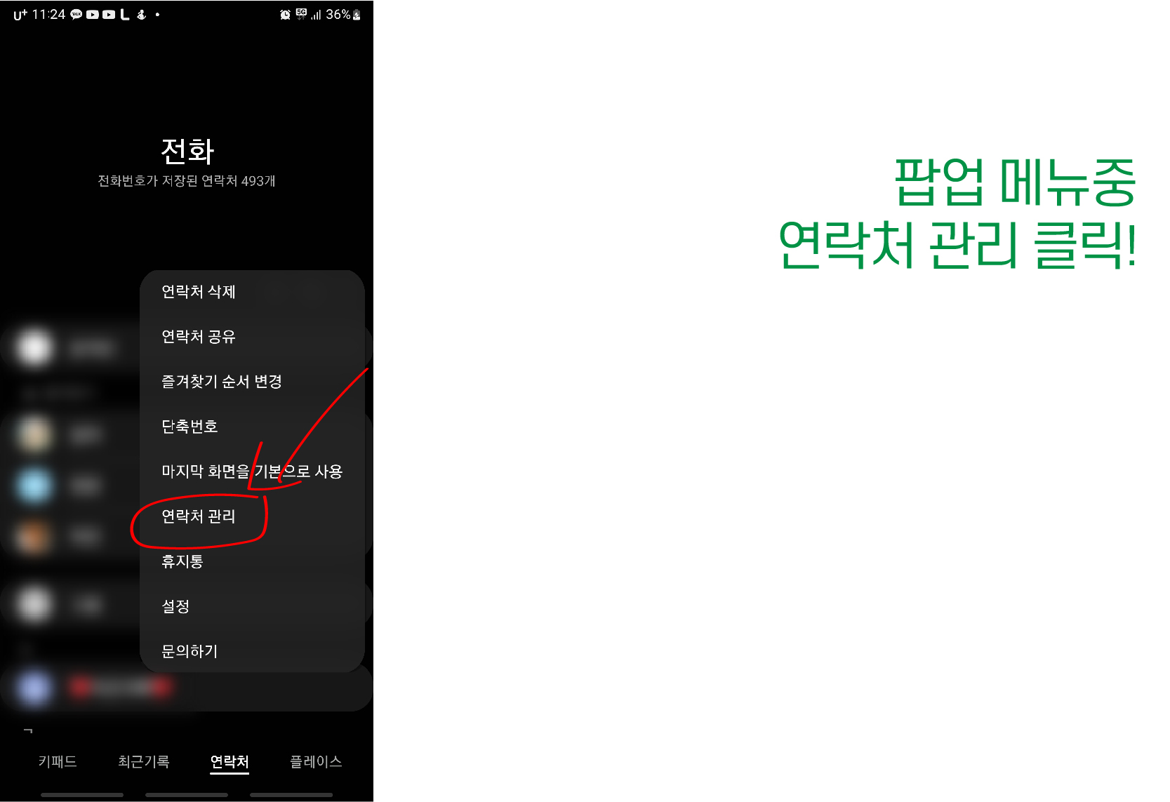 8. 팝업메뉴중 연락처 관리 클릭