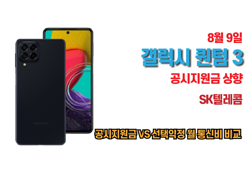 8월 9일 SK텔레콤의 갤럭시 퀀텀 3 의 공시지원금이 상향 되었습니다.