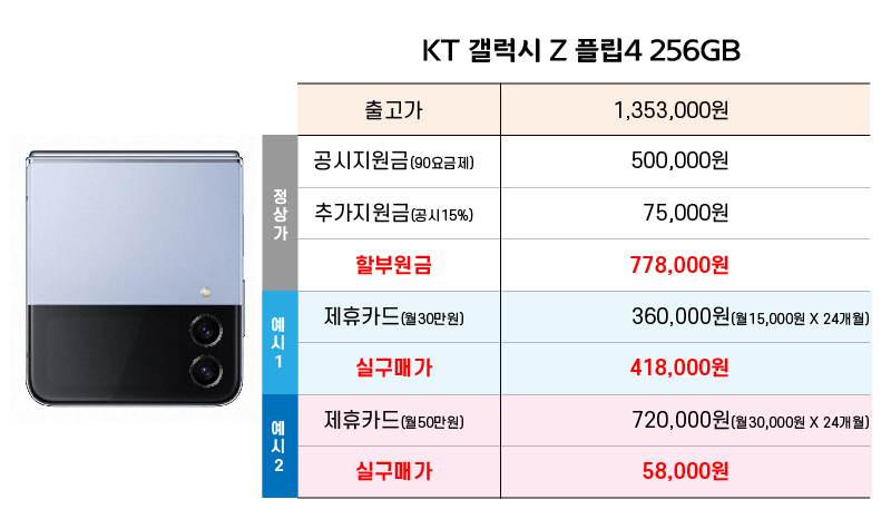 갤럭시 Z 플립4 20만원대, 10만원대 특벼할인, 특가할인 이런 말로 현혹하여