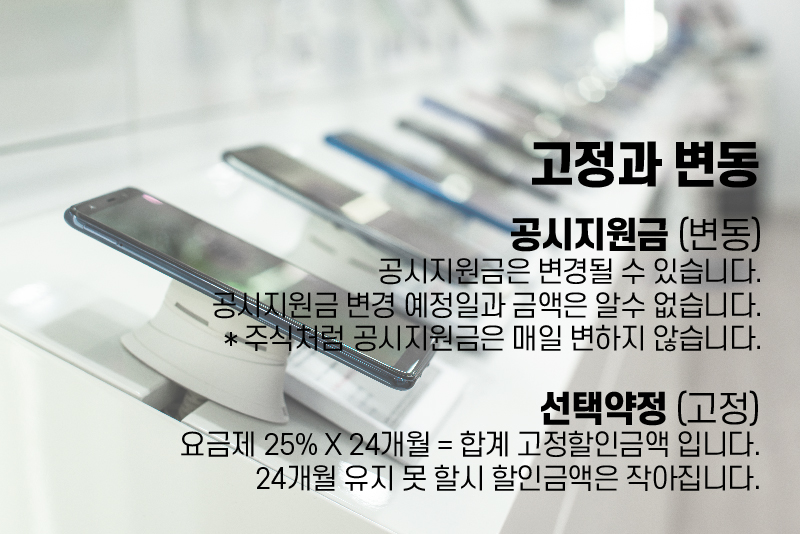 휴대폰의 공시지원금은 변경될 수 있습니다.