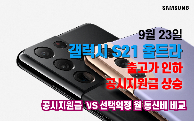 갤럭시 S21 울트라 256히가 공시지원금 VS 선택약정 월 통신비 비교 - 9월 23일 기준