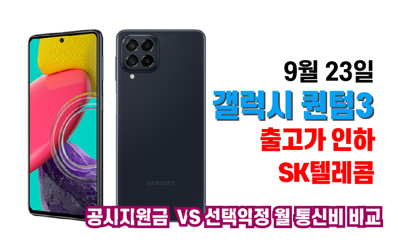 갤럭시 퀀텀3 공시지원금 VS 선택약정 월 통신비 비교 - 9월 23일 기준