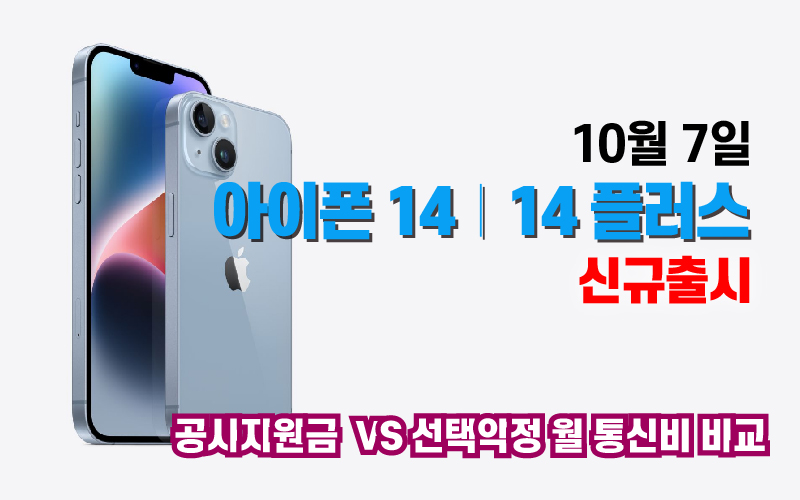 아이폰 14, 아이폰 14 플러스 신규출시 공시지원금 VS 선택약정 월 통신비 비교
