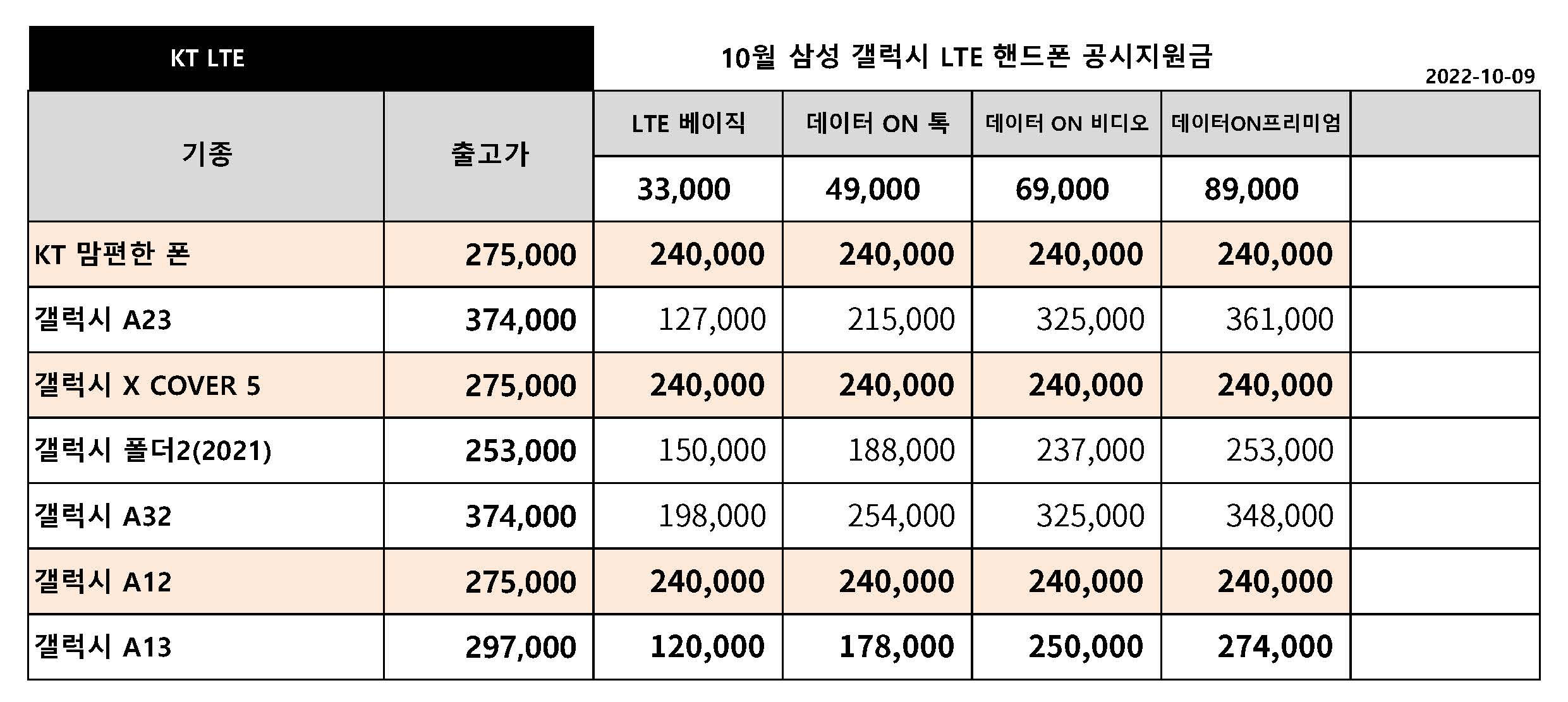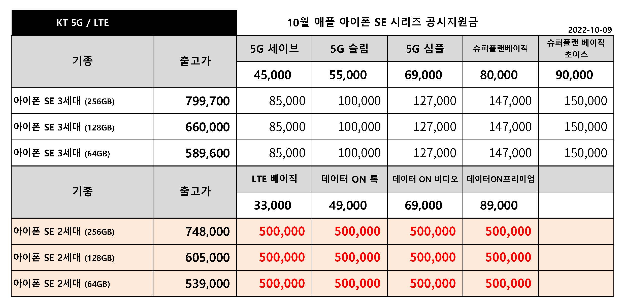 10월 핸드폰 구매에 참고하여 상담하시면 좋을 것 같습니다.