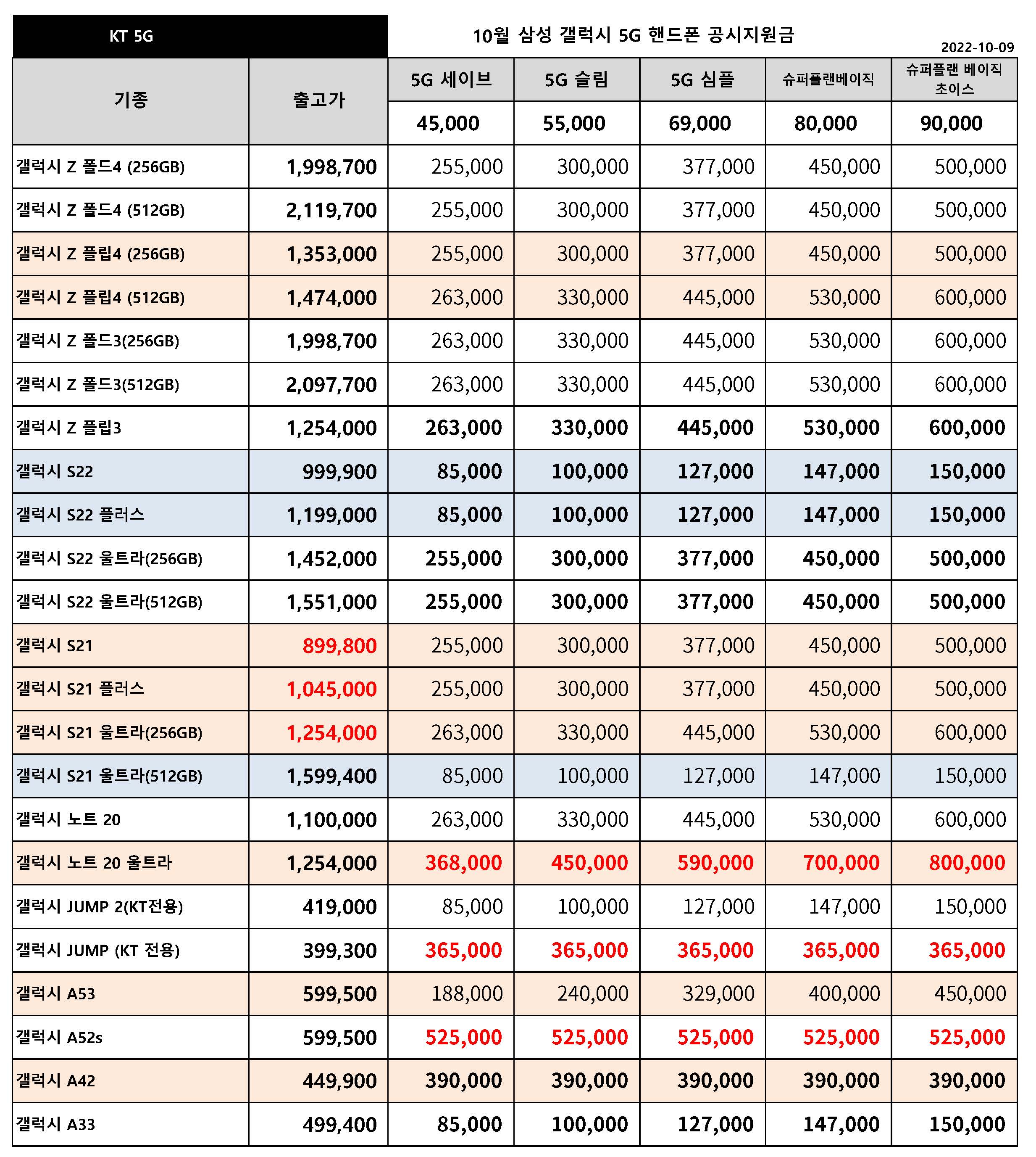 10월 KT 주요 휴대폰 공시지원금 정리 & 추천 핸드폰