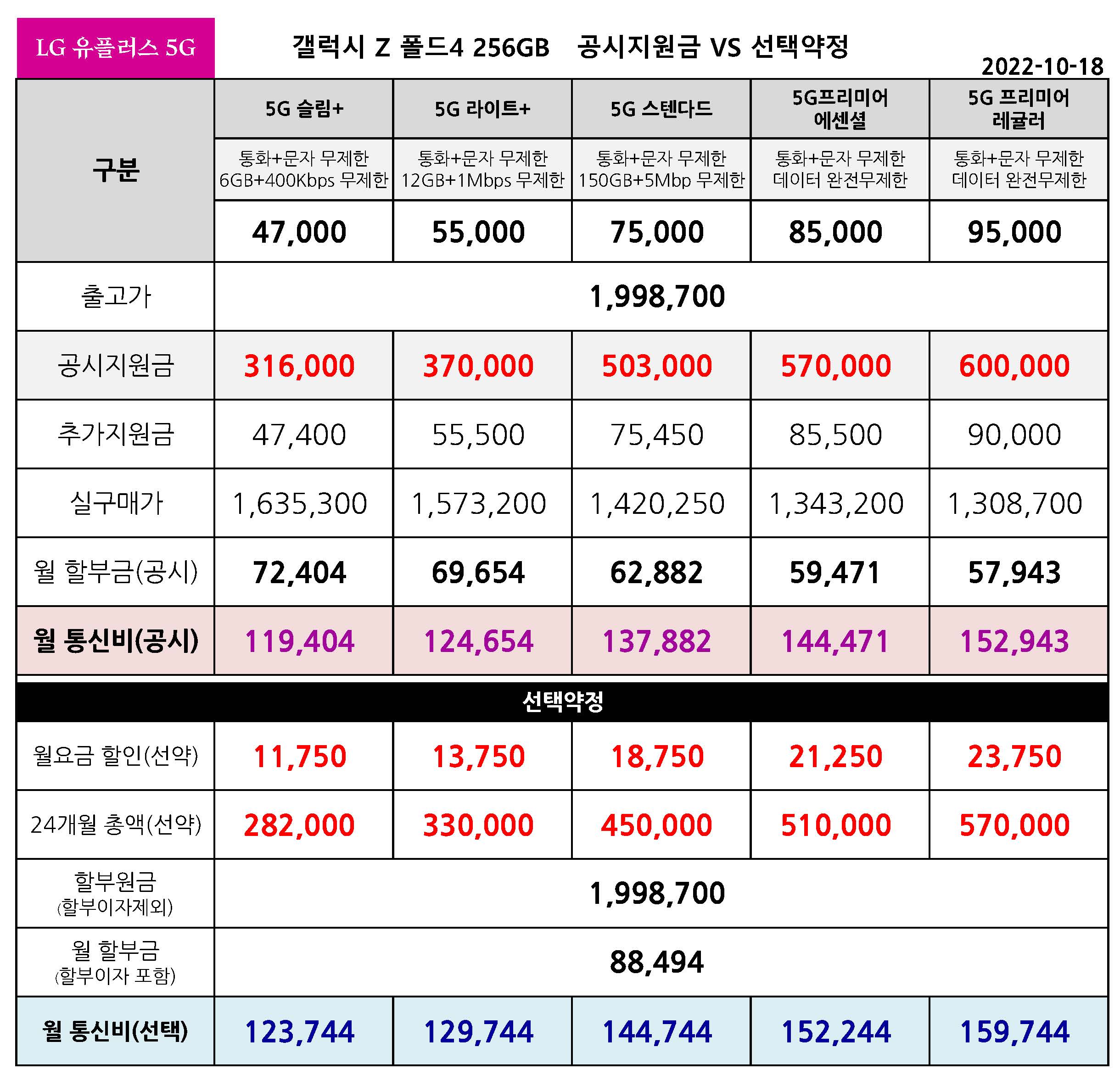 갤럭시 Z 폴드4 공시지원금 상승 - 10월 18일 LG 유플러스