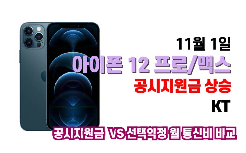 아이폰 12 프로, 12 프로 맥스 공시지원금 상승 월 통신비는? - KT 11월1일