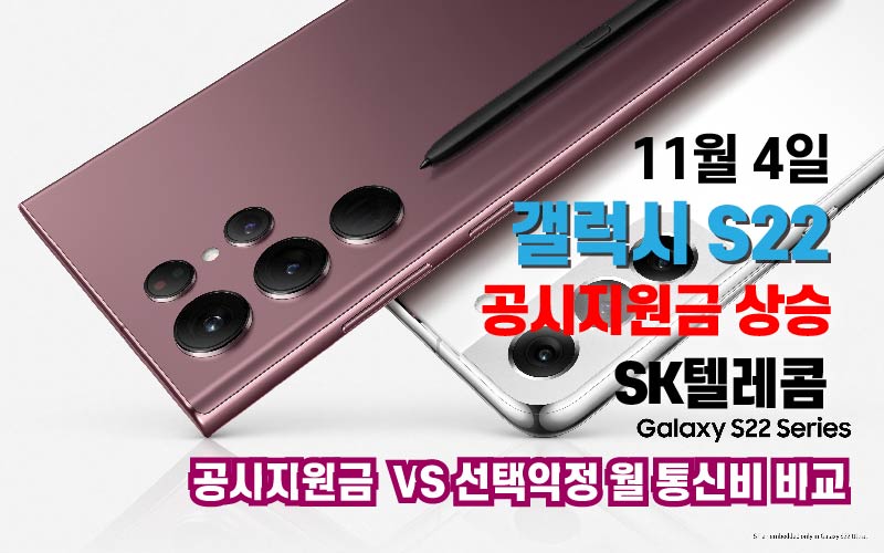 갤럭시 S22 공시지원금 상승 월 통신비 변동 확인 - 11월 4일 SK텔레콤