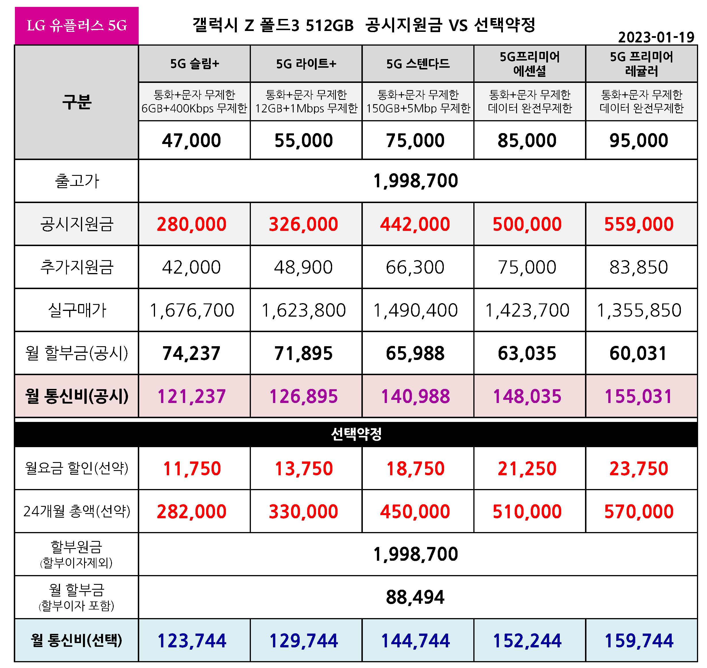 23년 1월 19일 LG 유플러스에서 삼성 갤럭시 Z 폴드3 의 출고가 인하를 하며