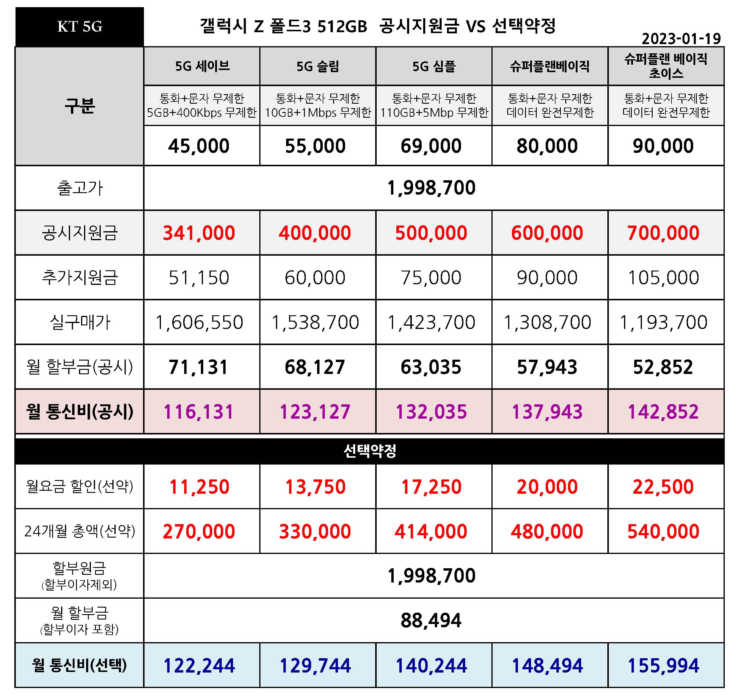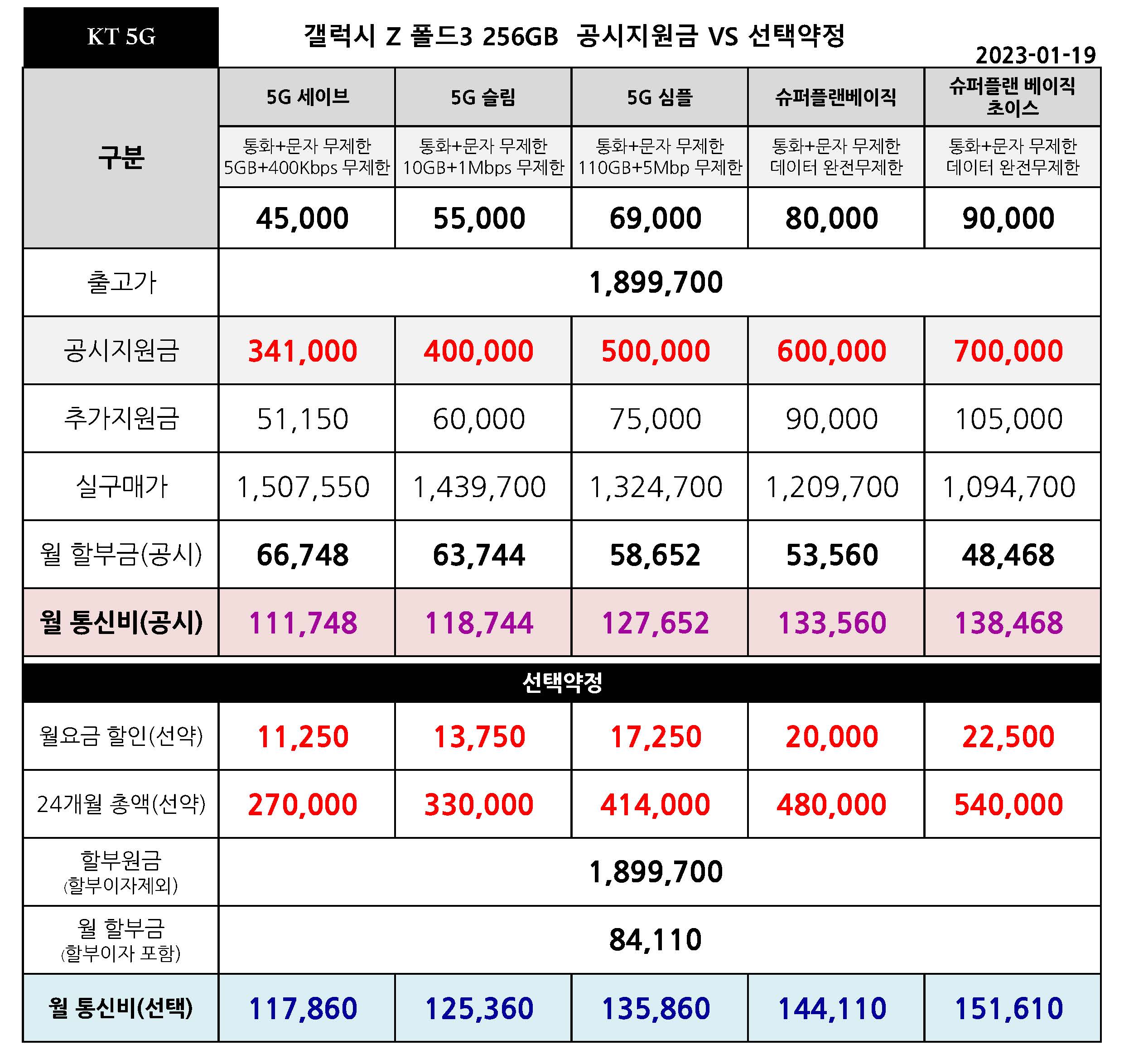 | 갤럭시 폴드3 출고가 인하 공시지원금 & 선택약정 월 통신비 요금표 - 3월 15일 (0) | 2023.03.17 |