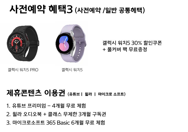 1. 갤럭시 워치5 30% 할인쿠폰 + 풀커버 팩 무료증정