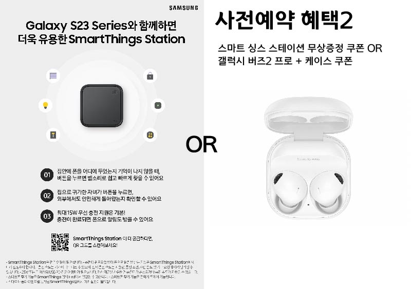 사전예약 혜택 2 - 스마트 싱스 스테이션 무상증정 쿠폰 or 갤럭시 버즈2 프로 + 케이스 쿠폰