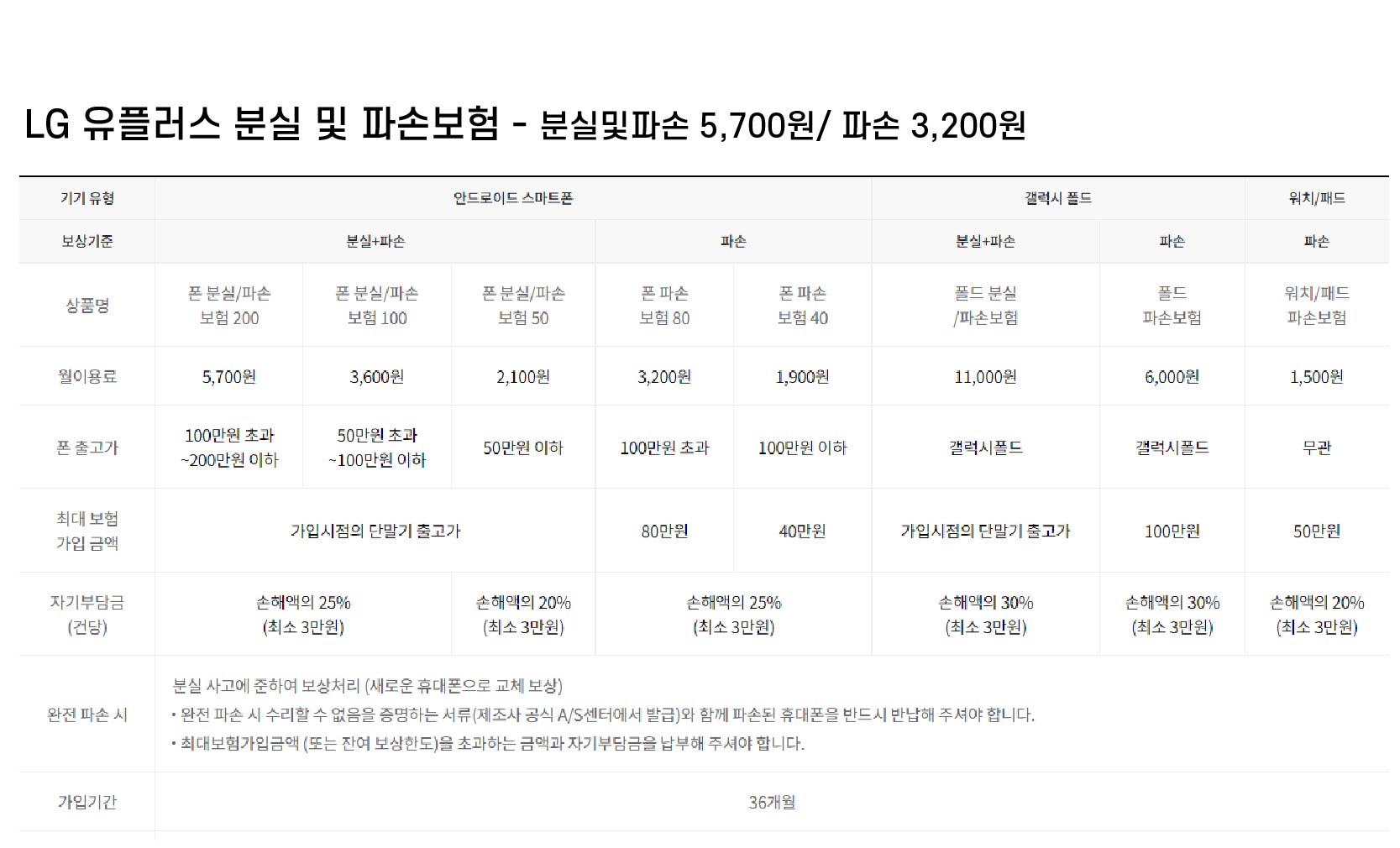 ** LG유플러스 분실 및 파손보험