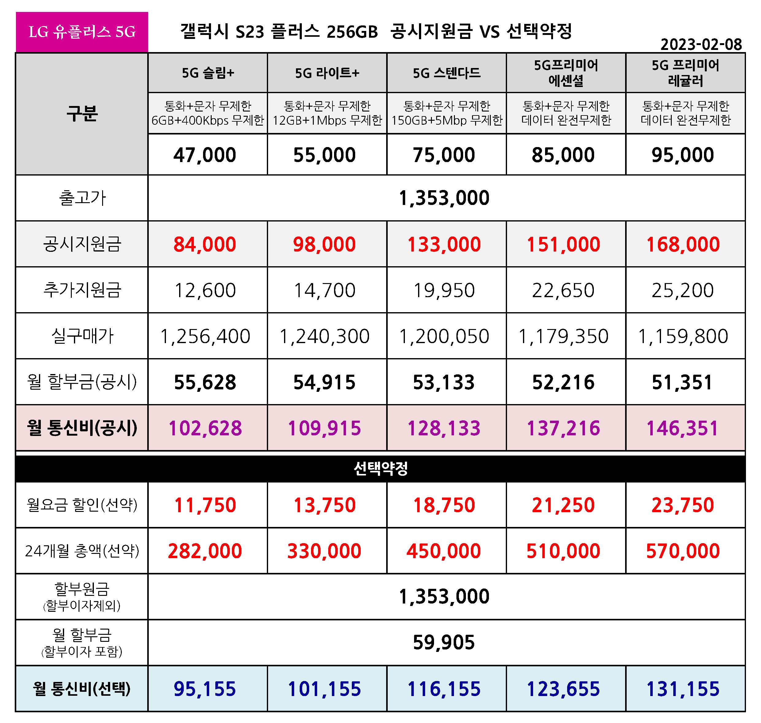 ** 갤럭시 S23 플러스 256기가 공시지원금 & 선택약정