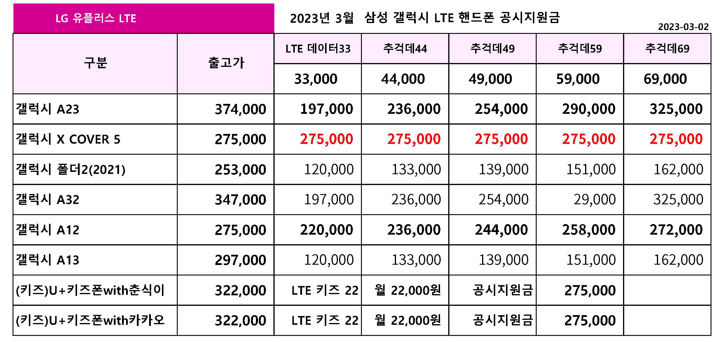 3월 LG유플러스 주요 핸드폰 출고가 & 공시지원금 정리