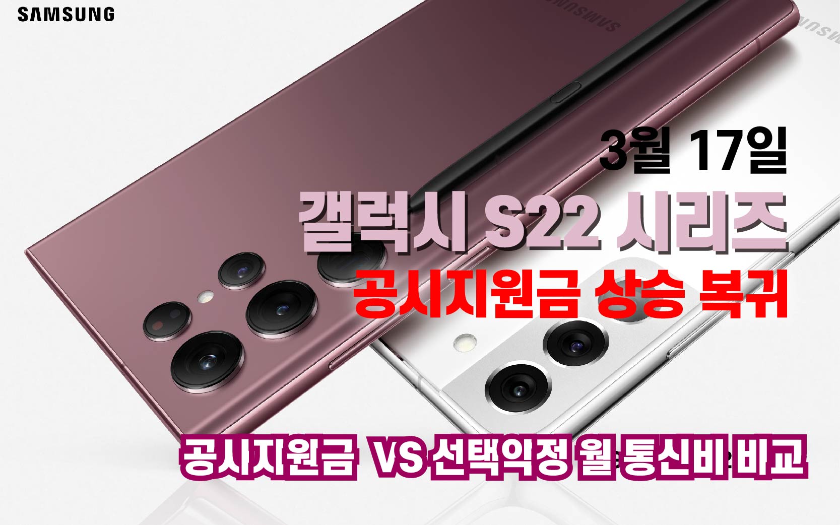 갤럭시 S22 시리즈 공시지원금 상승, 복귀 공시 VS 선약 월 요금표 정리 - 3월 17일