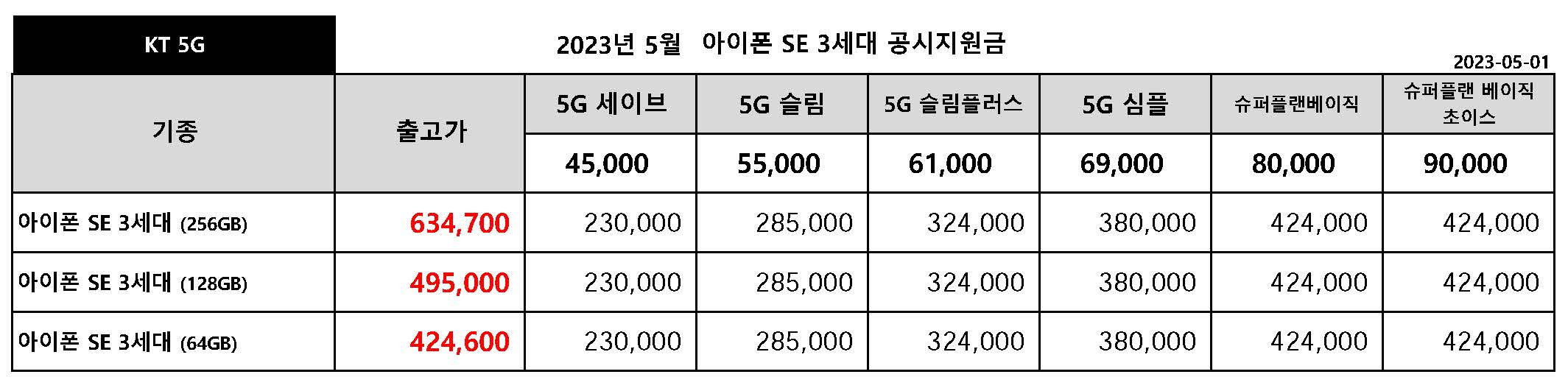 23년 5월 kt 주요 핸드폰 공시지원금 정리 포스팅 입니다.