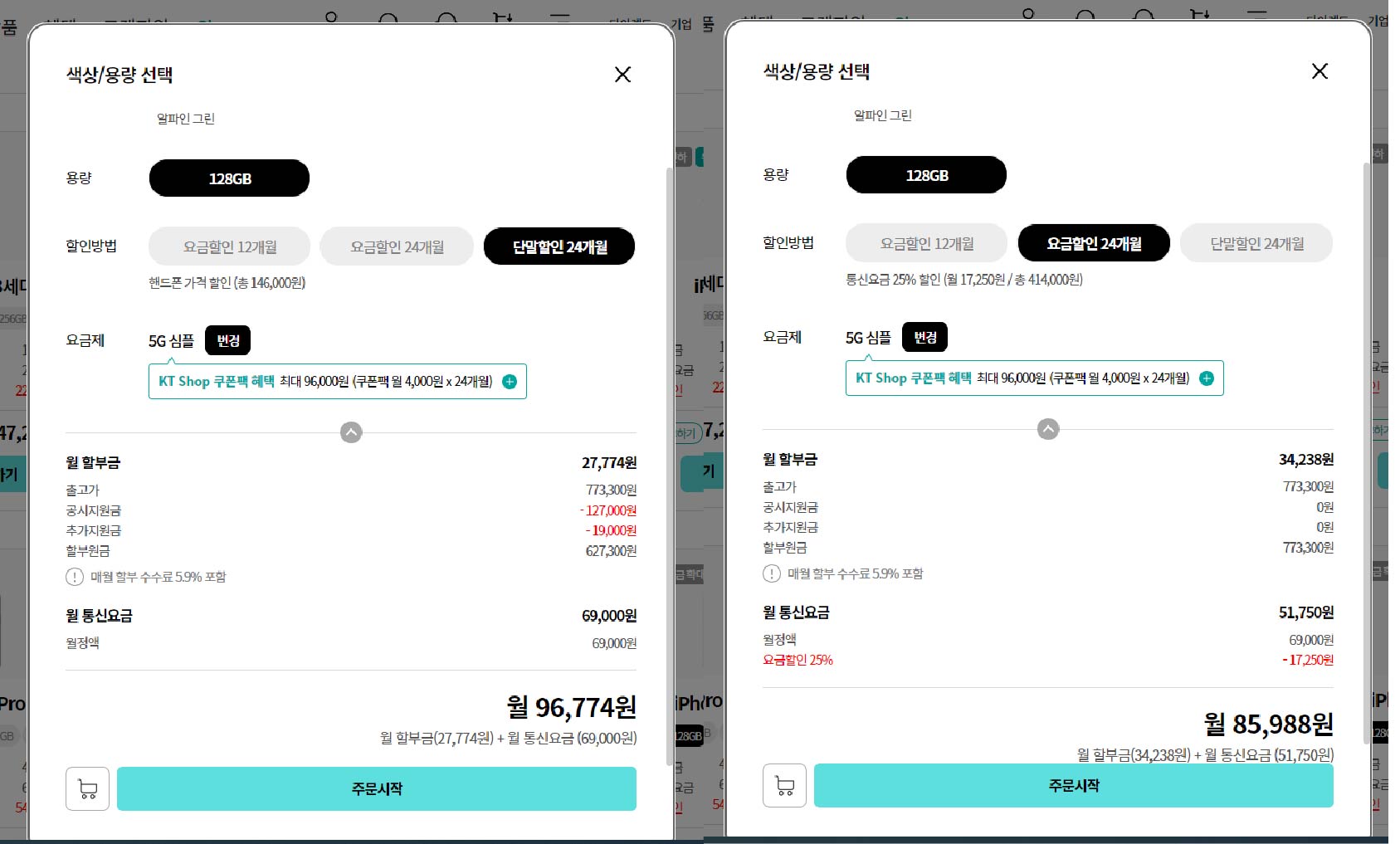 KT에선 아이폰 13 시리즈 출고가 인하를 하여 할인금액이 커 보이지 않지만,