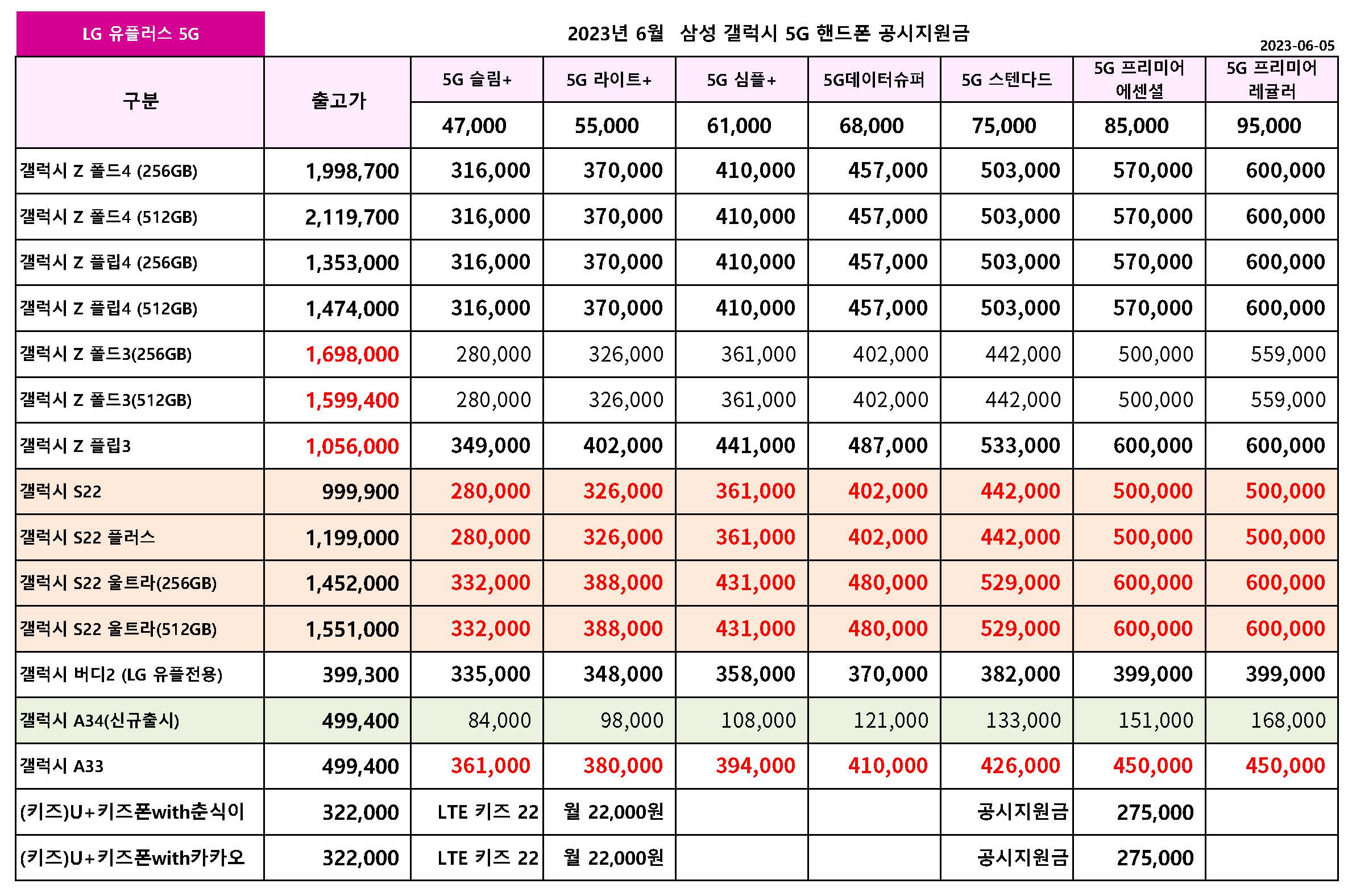 | 5월 LG 유플러스 주요 핸드폰 공시지원금 정리 - 개통참고용 (0) | 2023.05.12 |