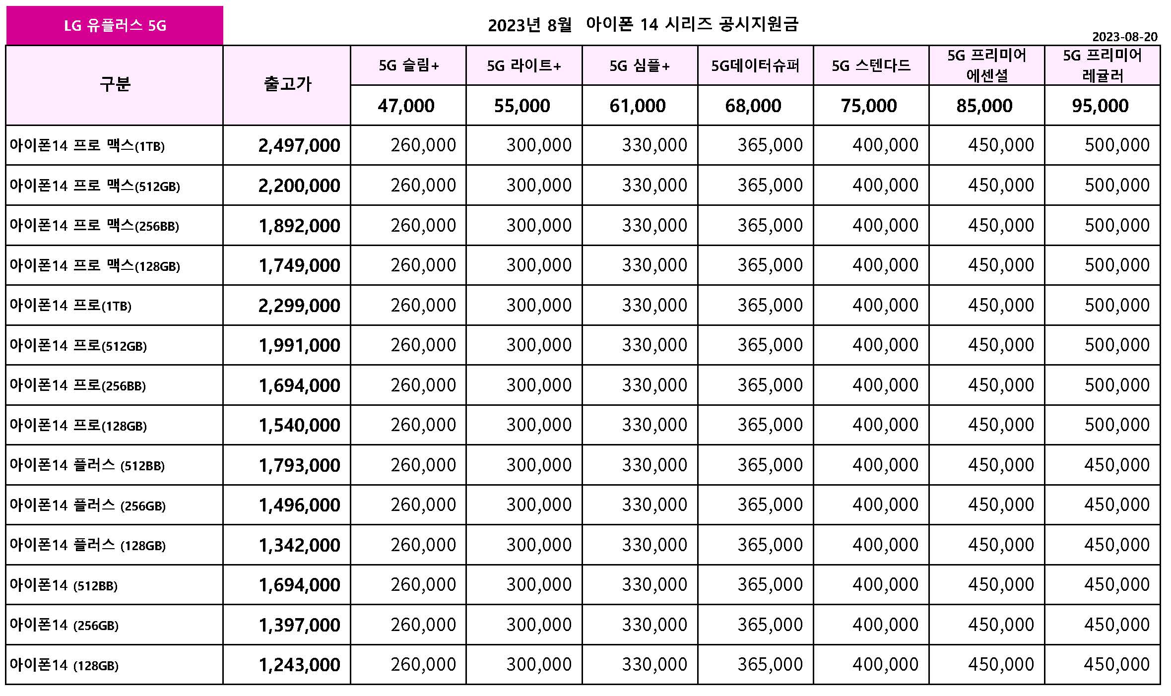 8월 LG 유플러스 아이폰 14 시리즈 공시지원금