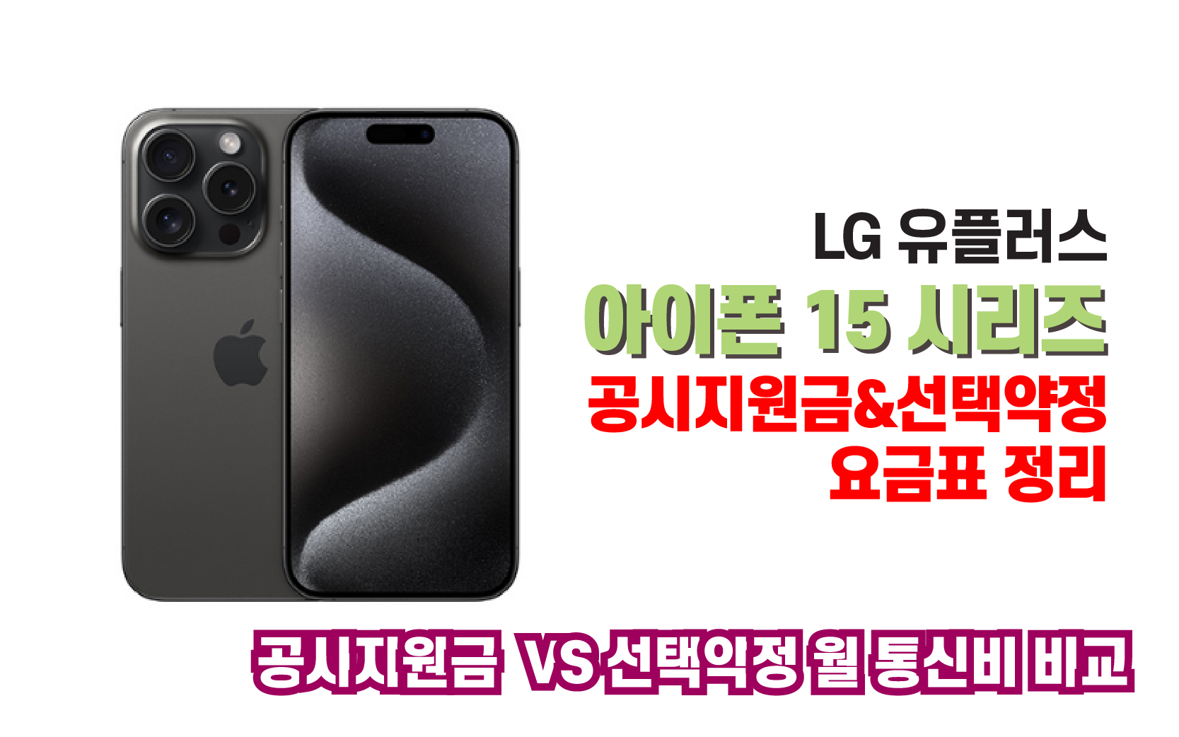 LG유플러스 아이폰 15 시리즈 공시지원금 & 선택약정 월 통신요금표 정리