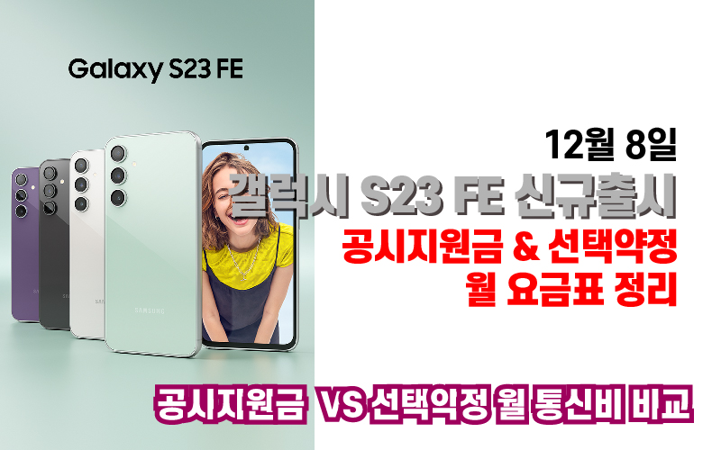 갤럭시 S23 FE 신규출시 공시지원금 & 선택약정 월 통신금표 - 12월 8일
