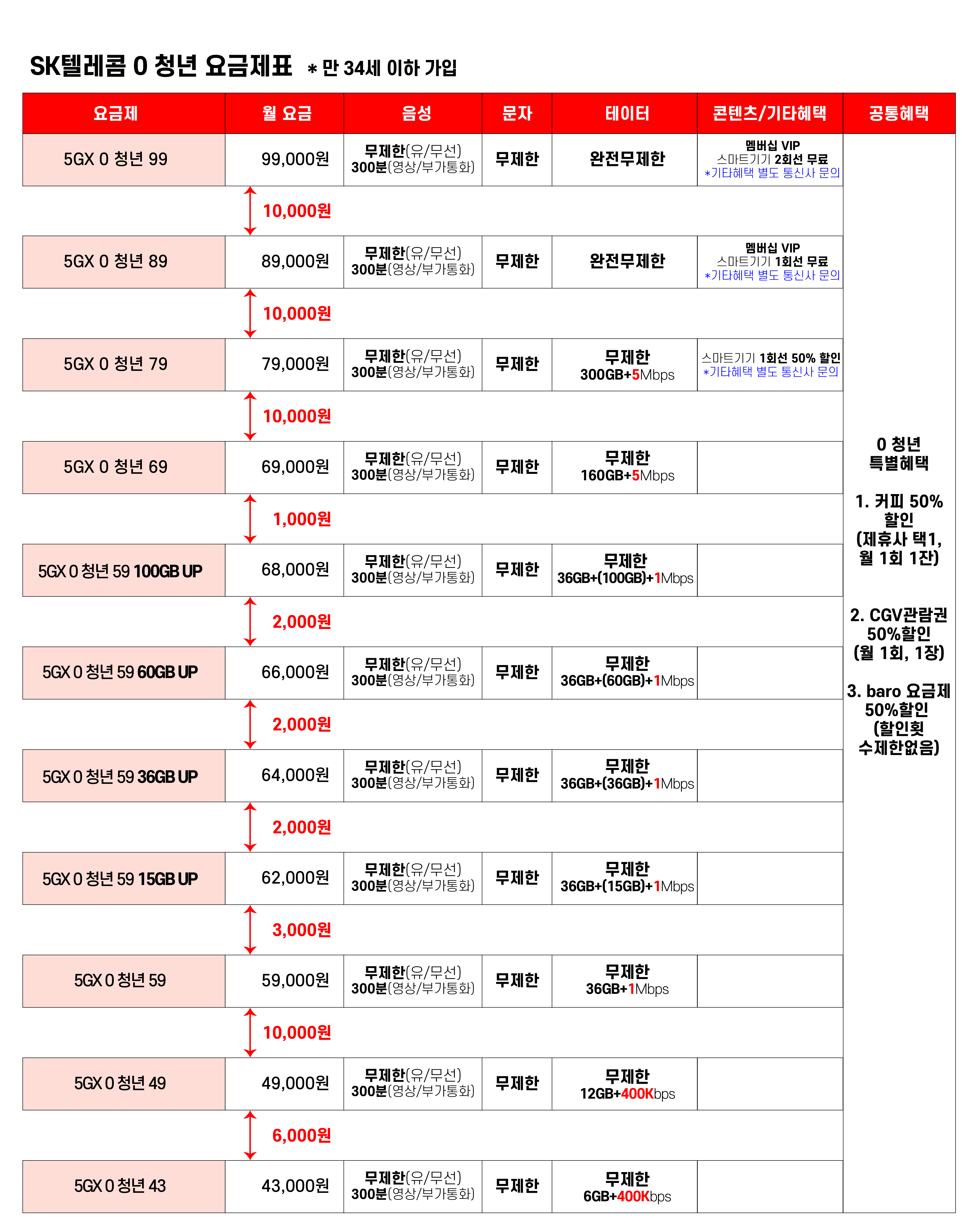 5GX 0 청년 요금제 - 만 34세 이하 가입가능 (24년 기준 89년생 생일이전)