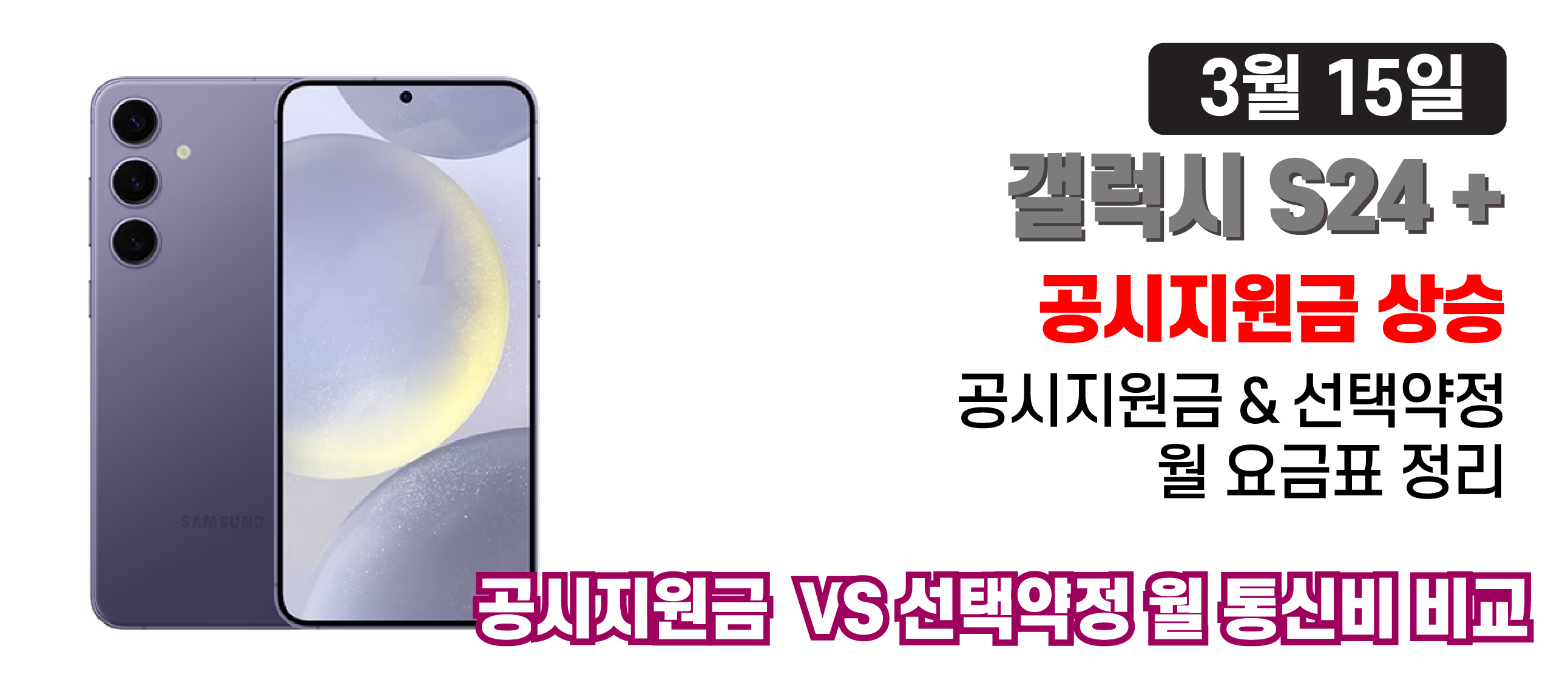 갤럭시 S24 플러스 256기가 공시지원금 & 선택약정 월 통신요금 비교표