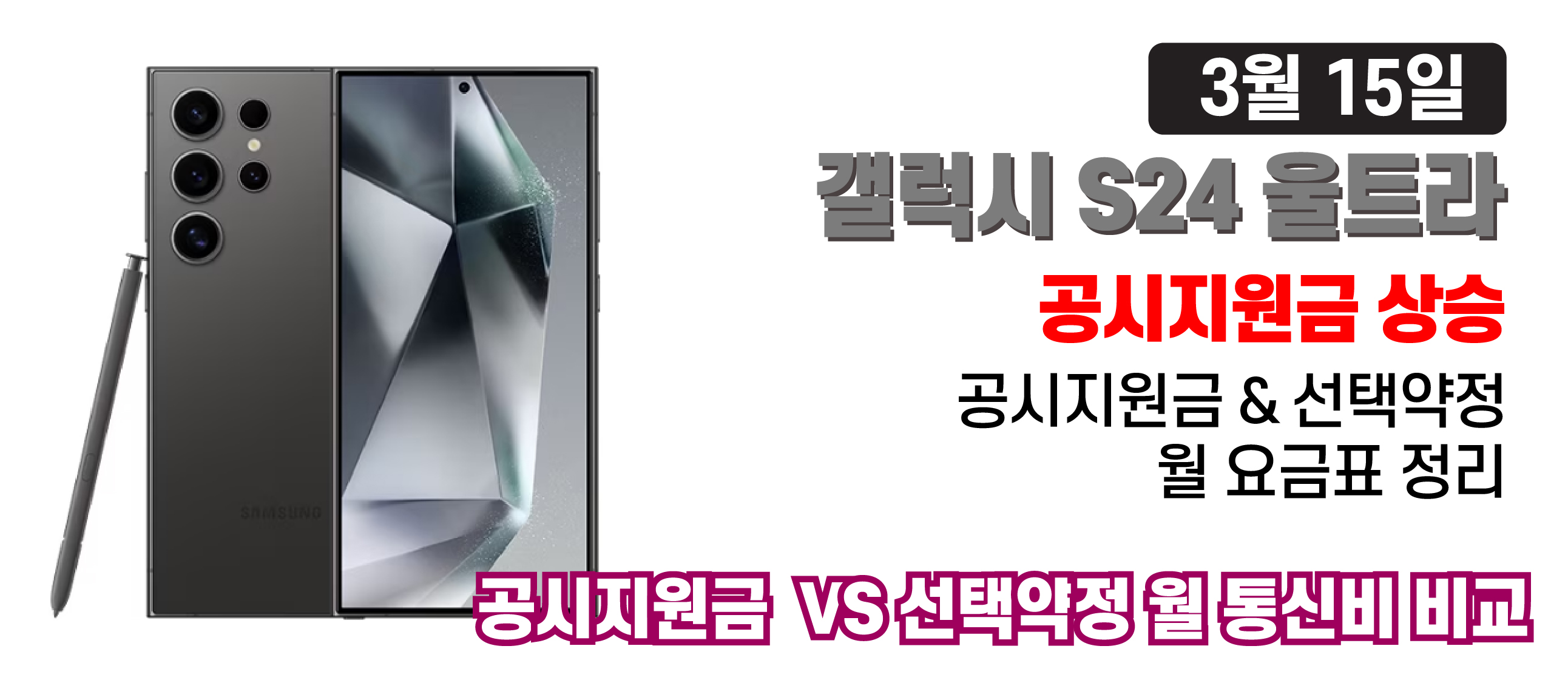 갤럭시 S24 울트라 512기가 공시지원금 & 선택약정 월 통신요금 비교표