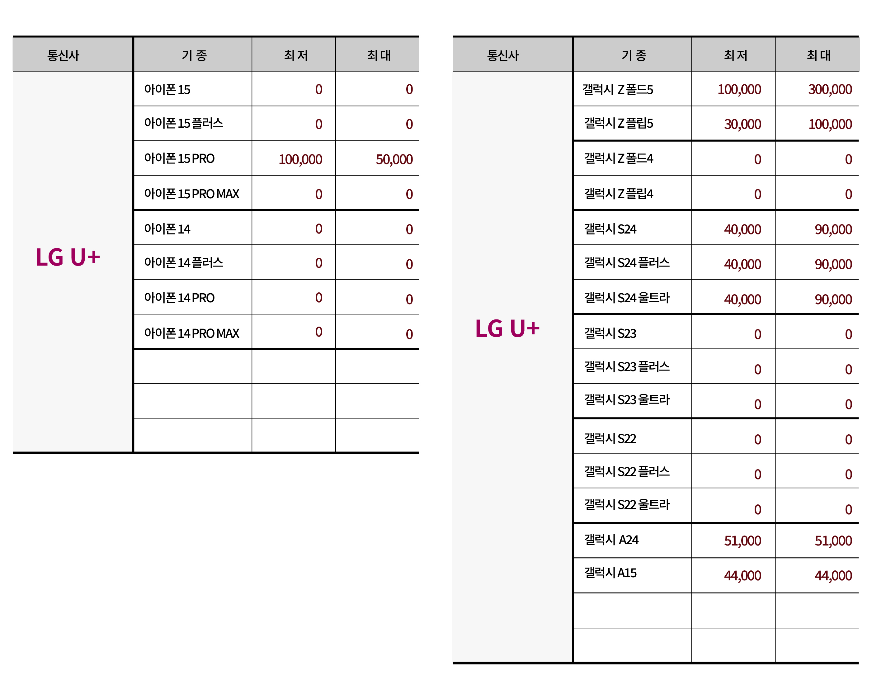 KT난 LG 유플러스는 대부분 고가요금제 부터 전환지원금을 지원하고 있습니다.