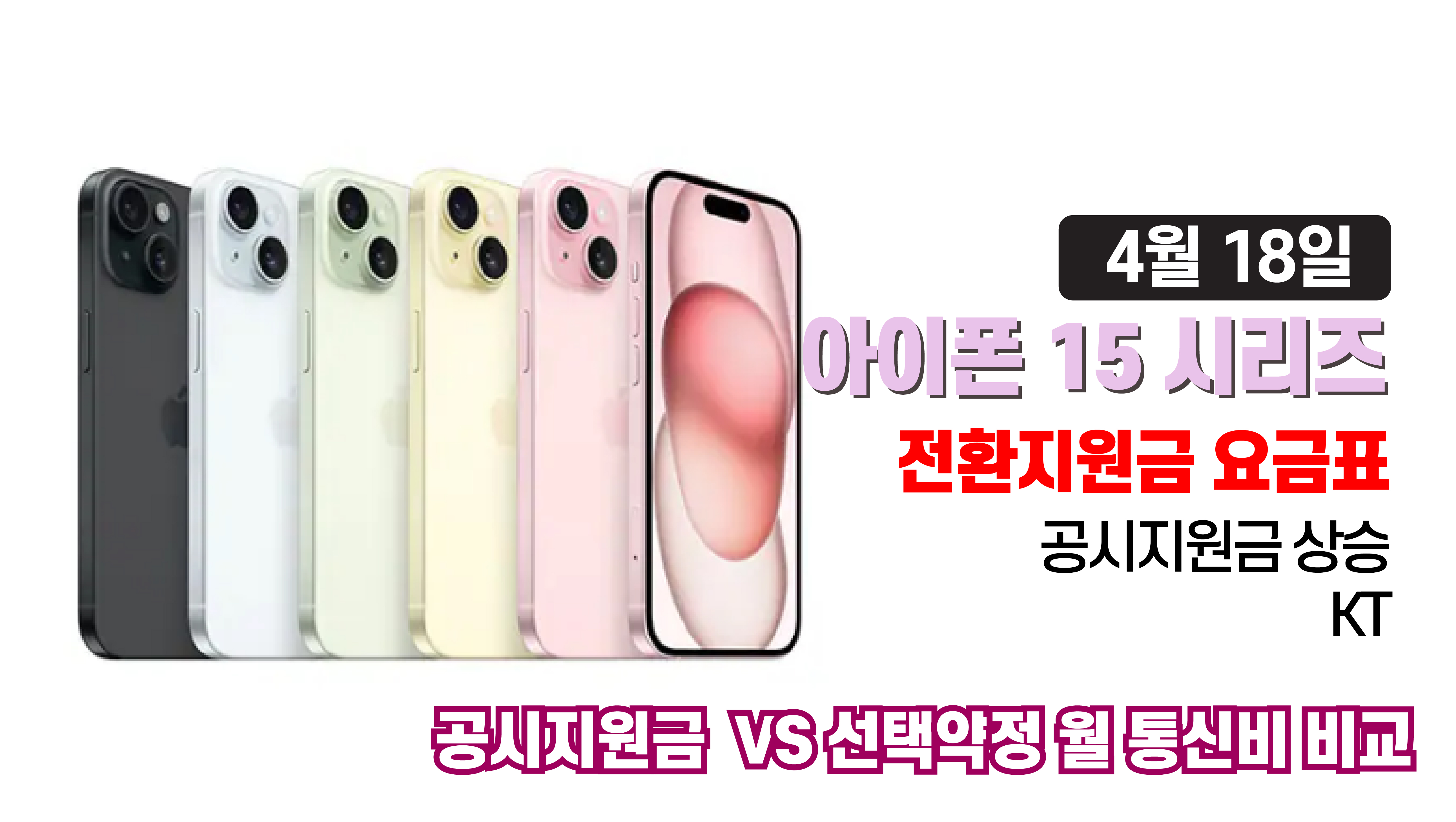 4월 16일 KT 에서 아이폰 15 시리즈의 공시지원금이 상향 되었습니다.
