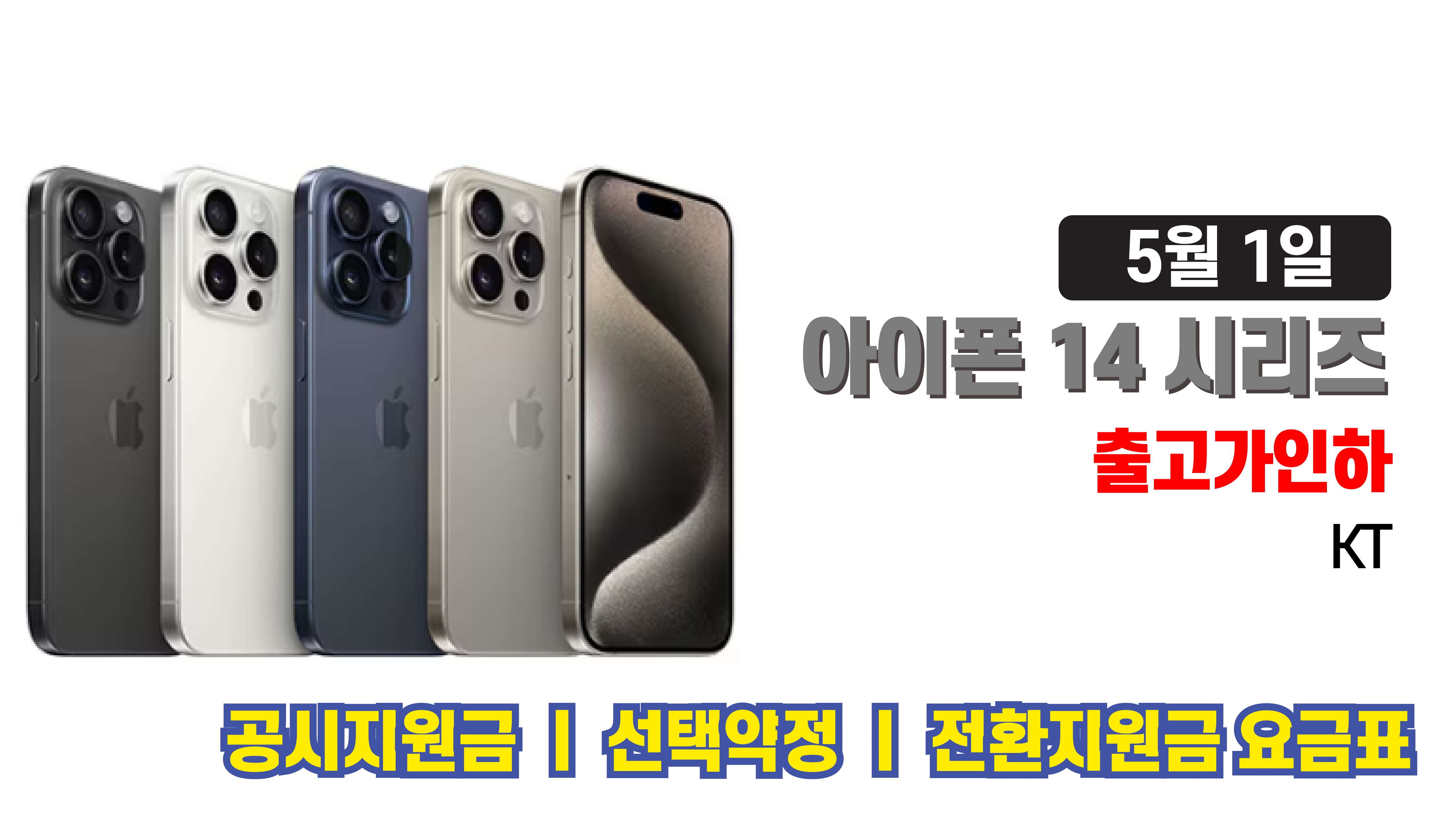 5월 1일 KT 에서 아이폰 14, 14 플러스, 14 프로, 14 프로 맥스 의 출고가가 인하 되었습니다.