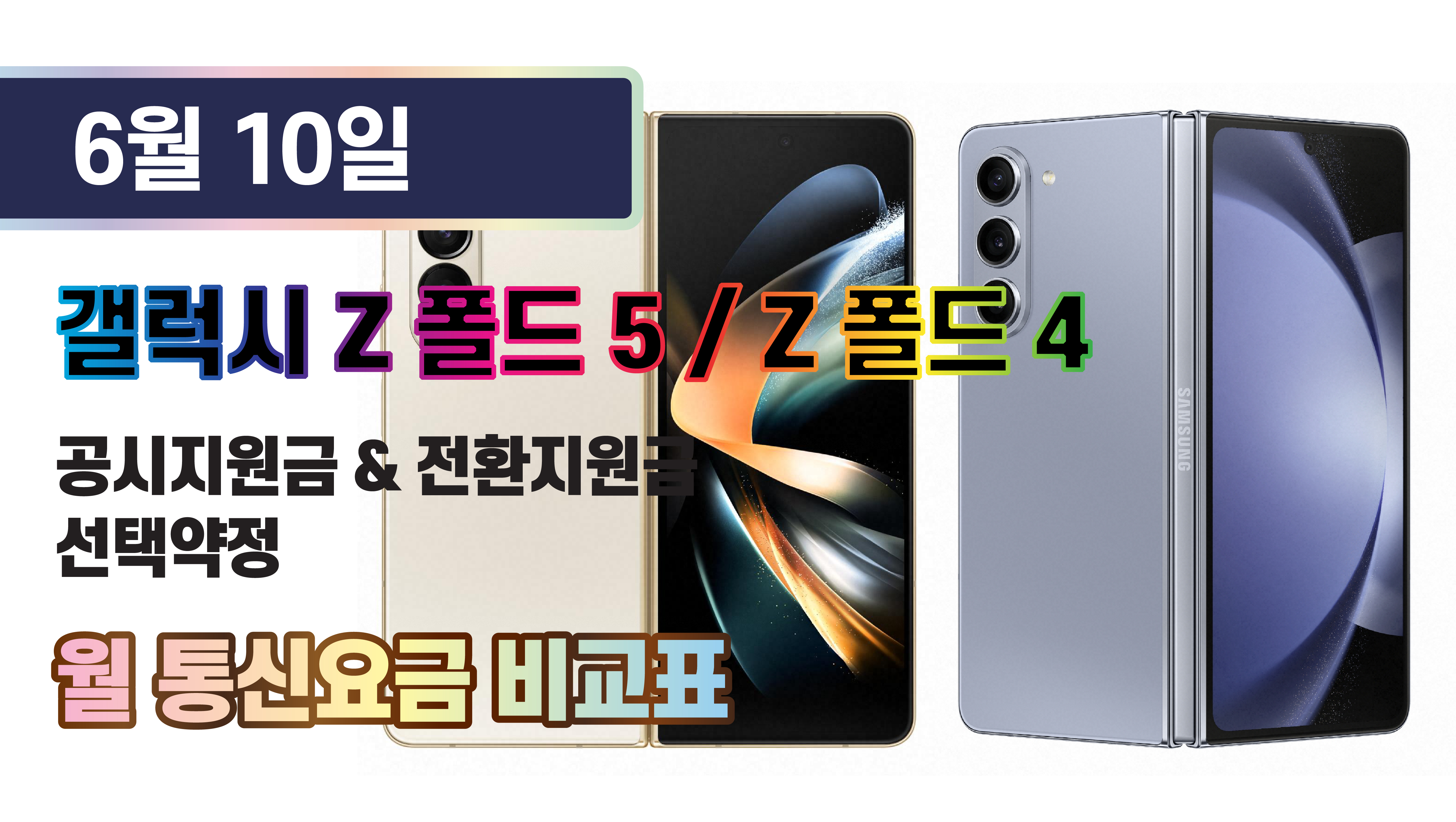 6월 갤럭시 Z 폴드5, 갤럭시 Z 폴드4 공시지원금, 전환지원금, 선택약정 월 통신요금 비교표 포스팅 입니다.
