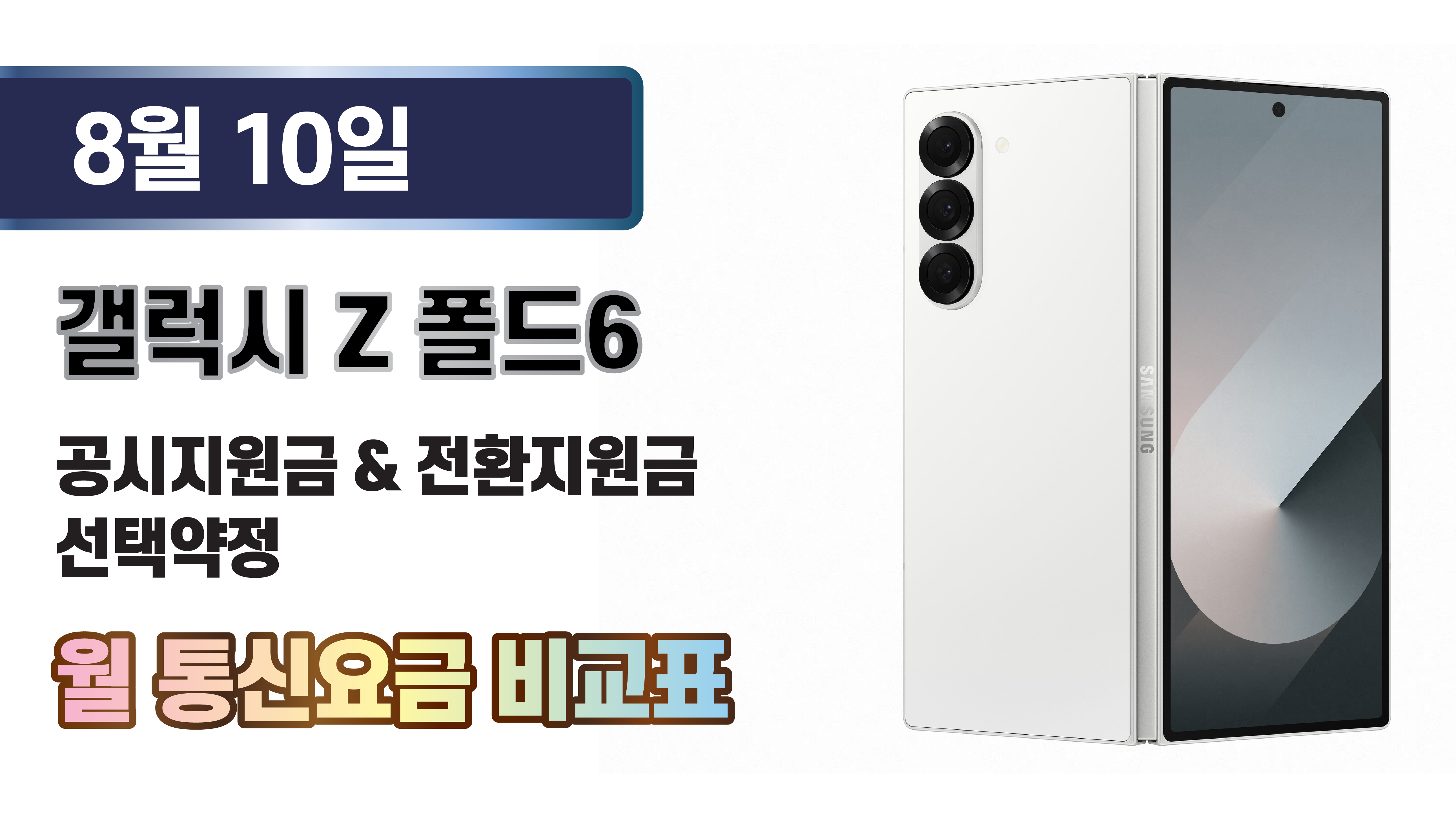 갤럭시 Z 폴드6 공시지원금 & 선택약정 & 전환지원금 통신사 월 통신요금 비교표