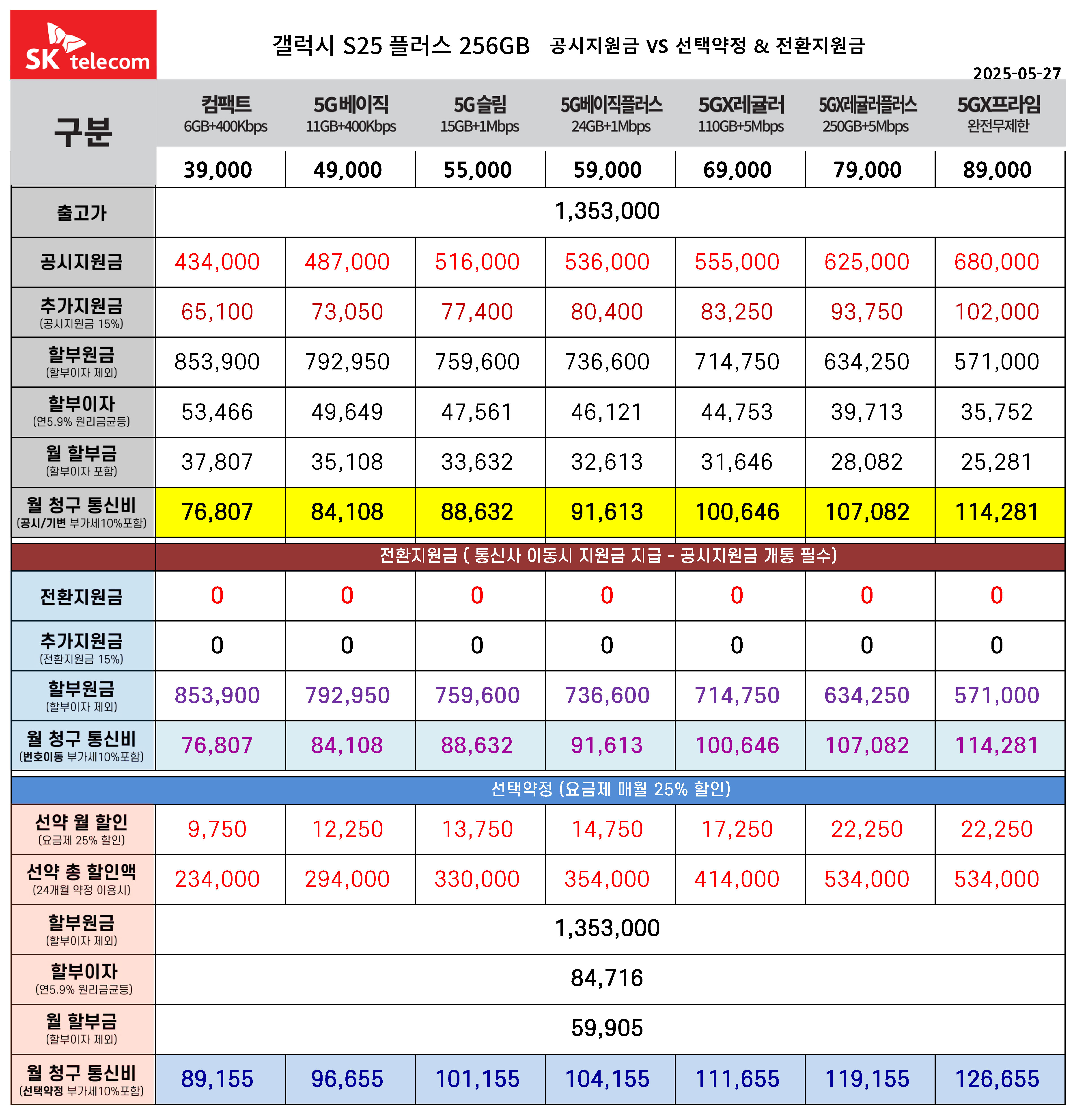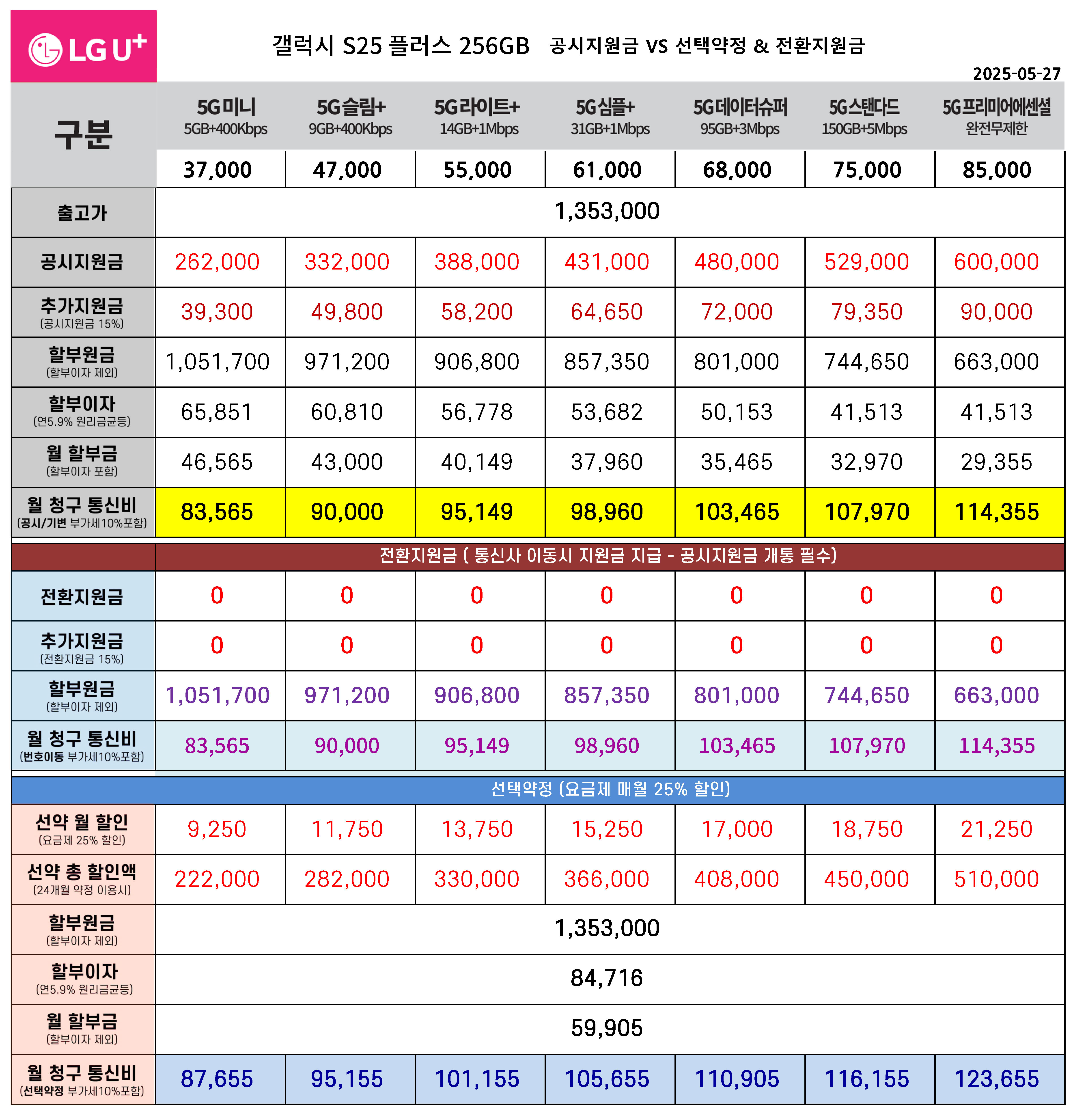 | 갤럭시 S25 공시지원금 대폭상향 + 월 통신비 요금표 (0) | 2025.05.27 |