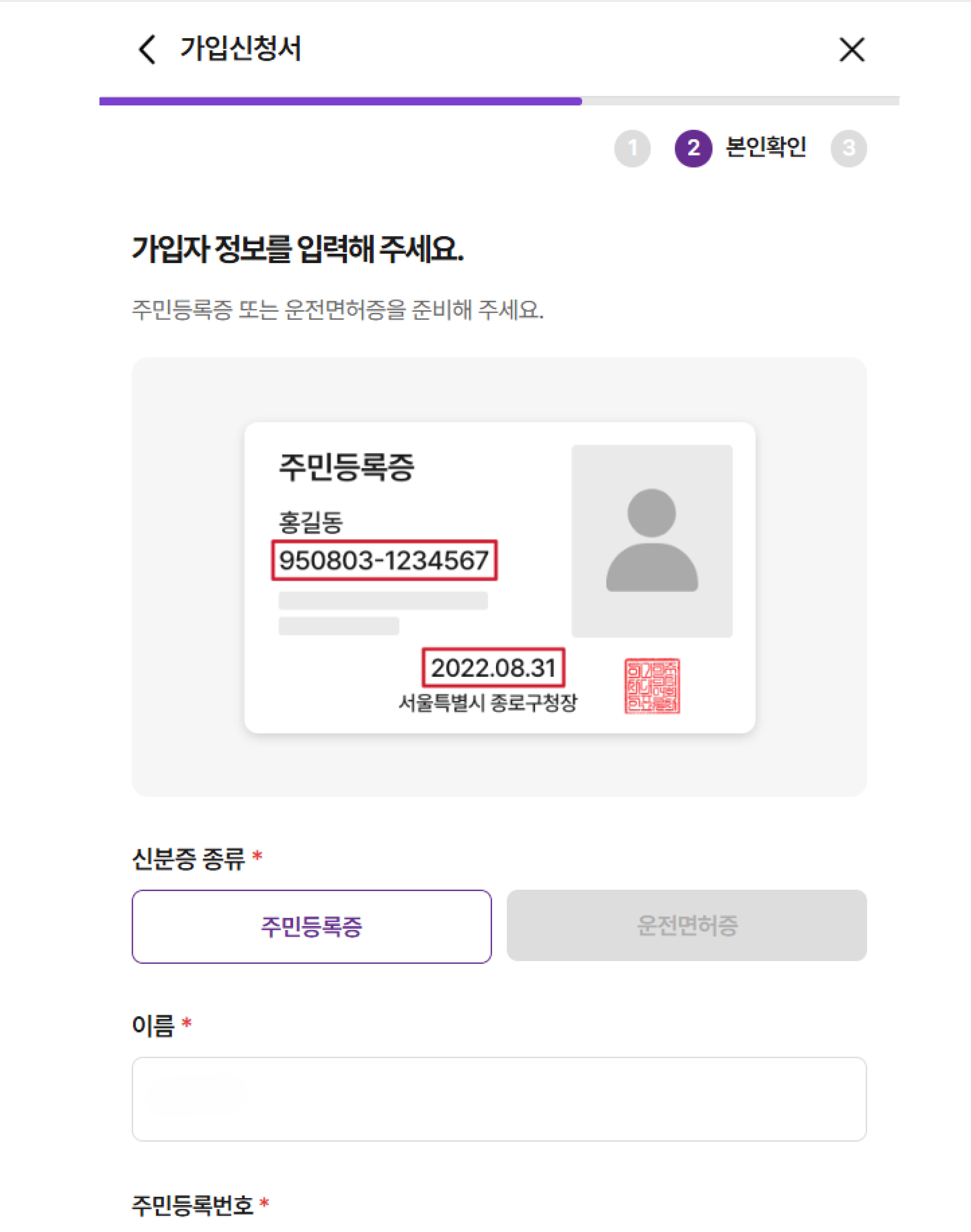 주민등록증 & 운전면허증으로 본인확인을 합니다.