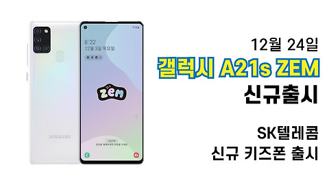| 키즈폰 갤럭시 A21s ZEM 신규출시 - 스펙, 구매가격, 공시지원금정리 (0) | 2020.12.25 |