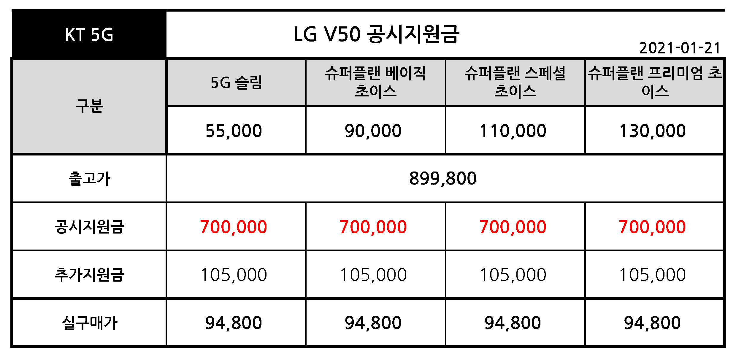 - LG 유플러스 LG V50 출고가 & 공시지원금