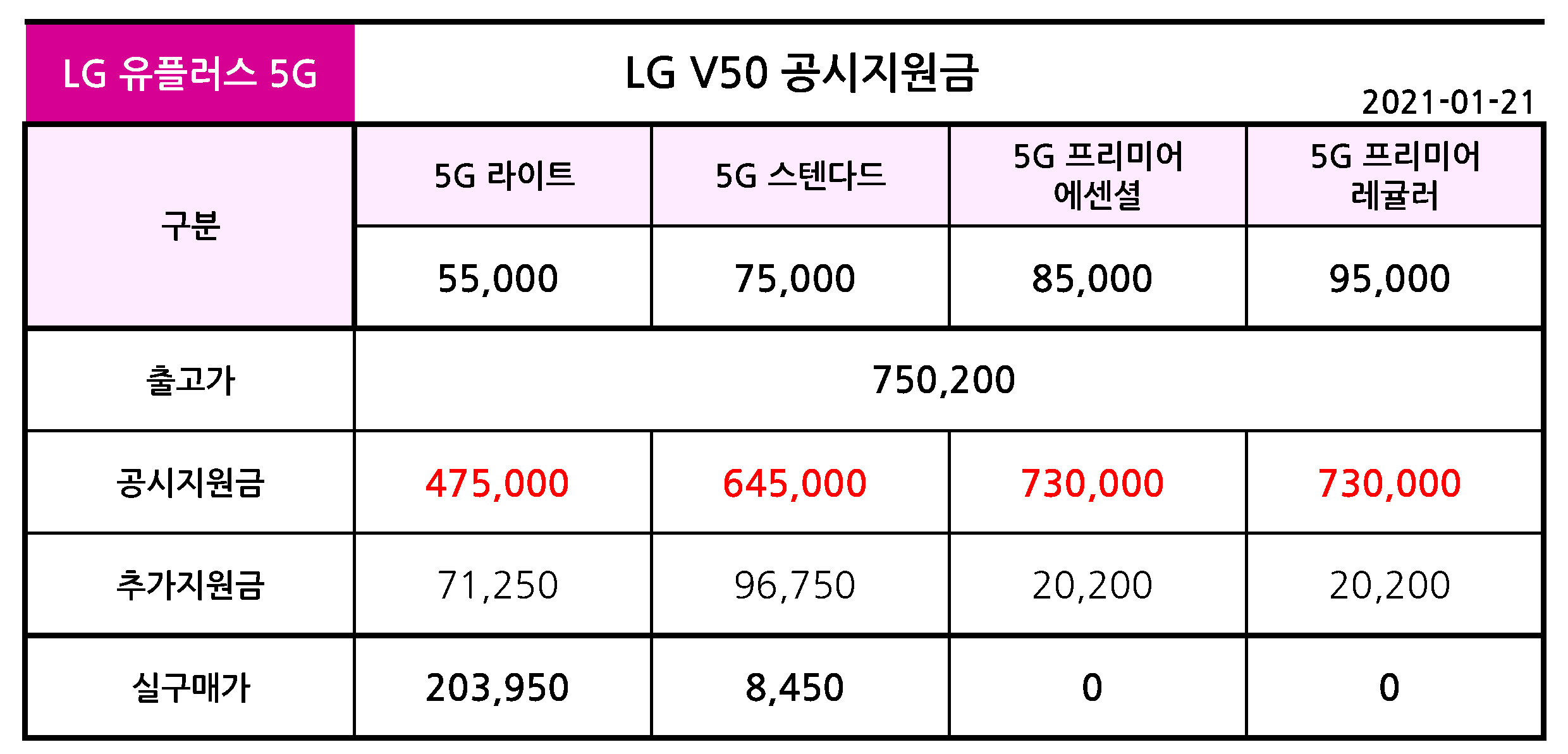 LG V50 출고가 인하, 공시지원금 상승 공짜폰 됐지만, 구매시 주의사항? - 1월 21일 LG 유플러스