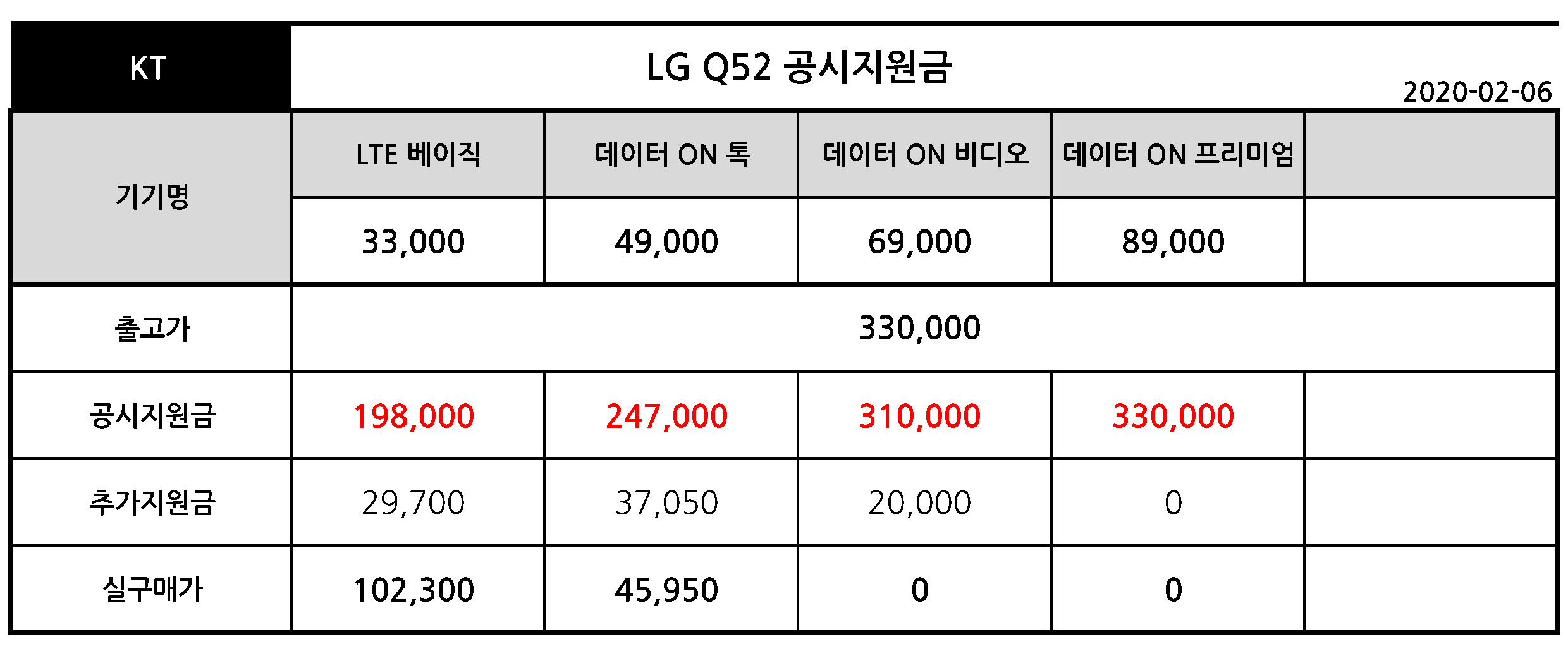 * KT LG Q52 공시지원금 - 공짜폰