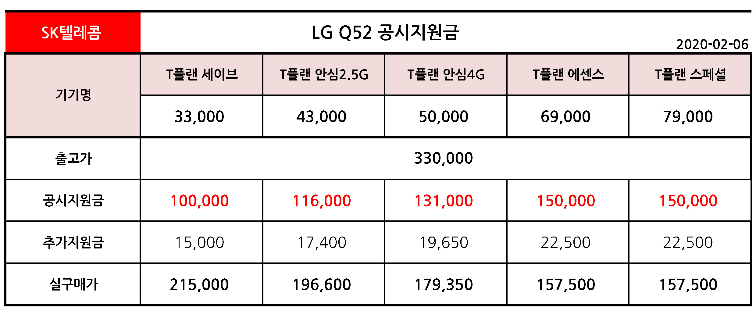 * SK텔레콤 LG Q52 공시지원금