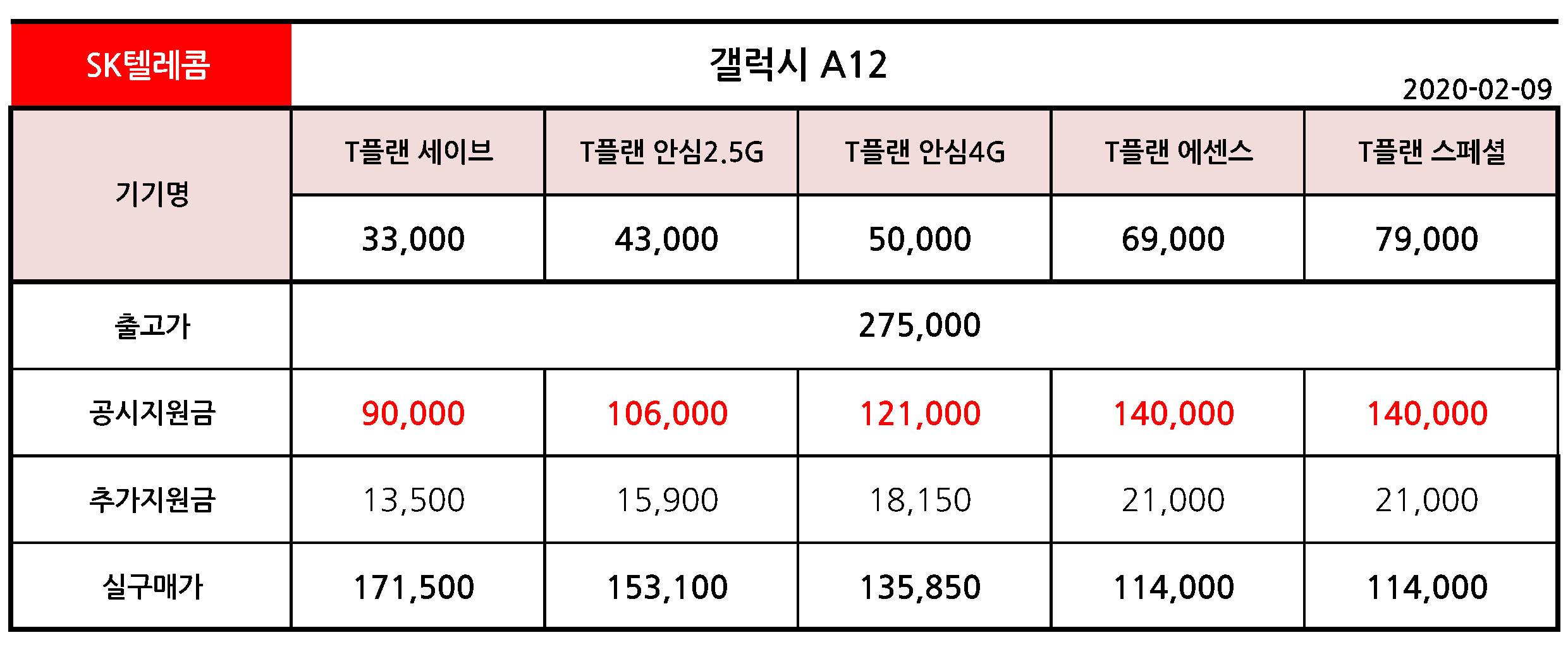 - KT 갤럭시 A12 출고가 & 공시지원금