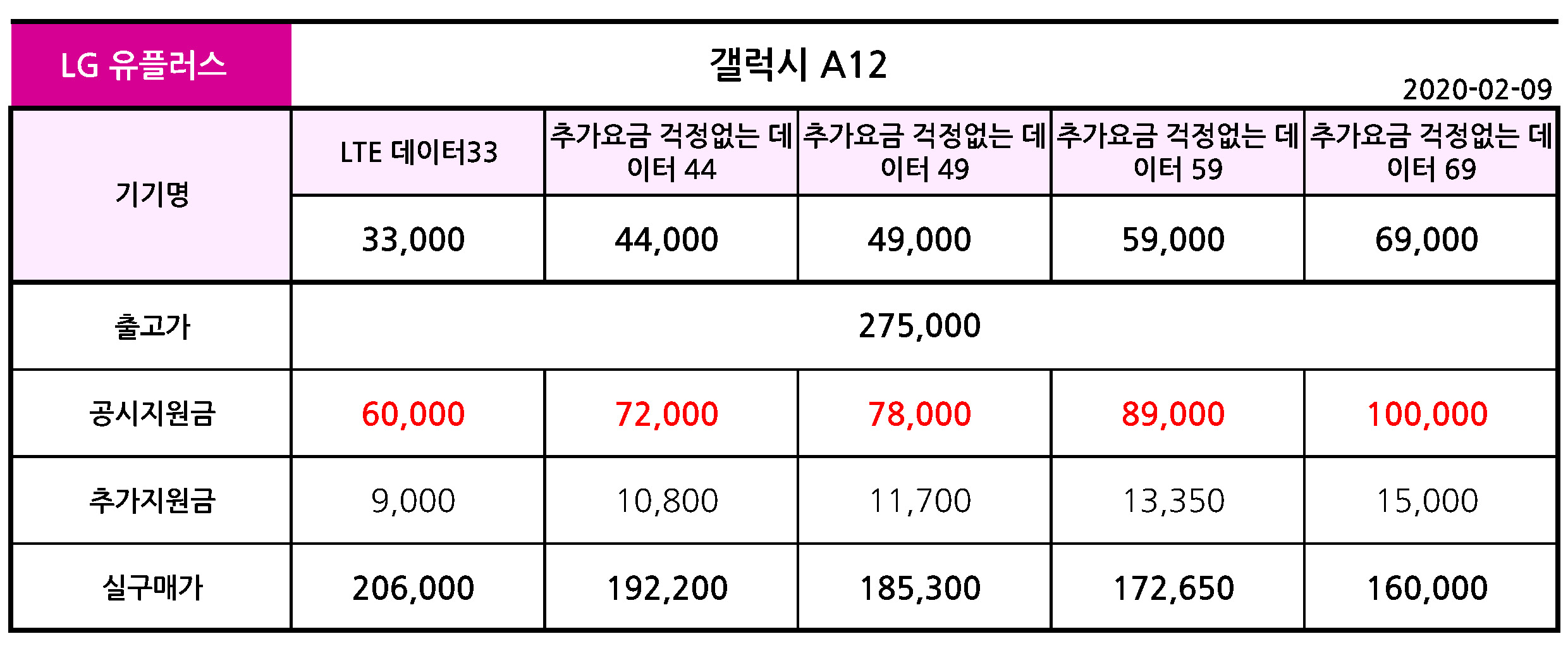 - LG 유플러스 갤럭시 A12 출고가 & 공시지원금